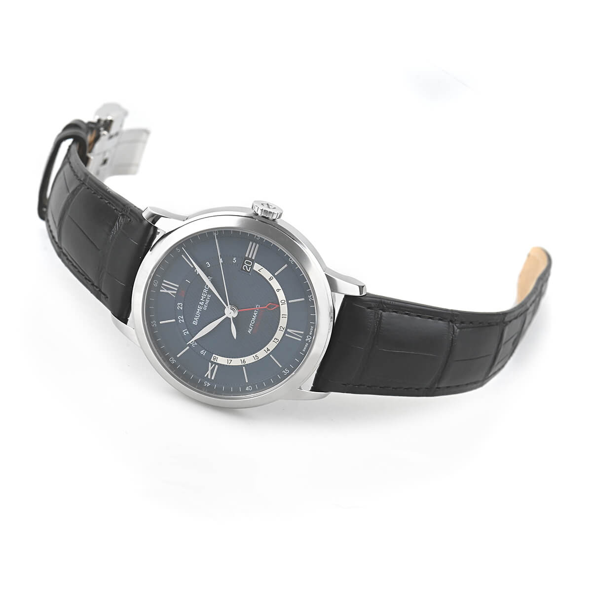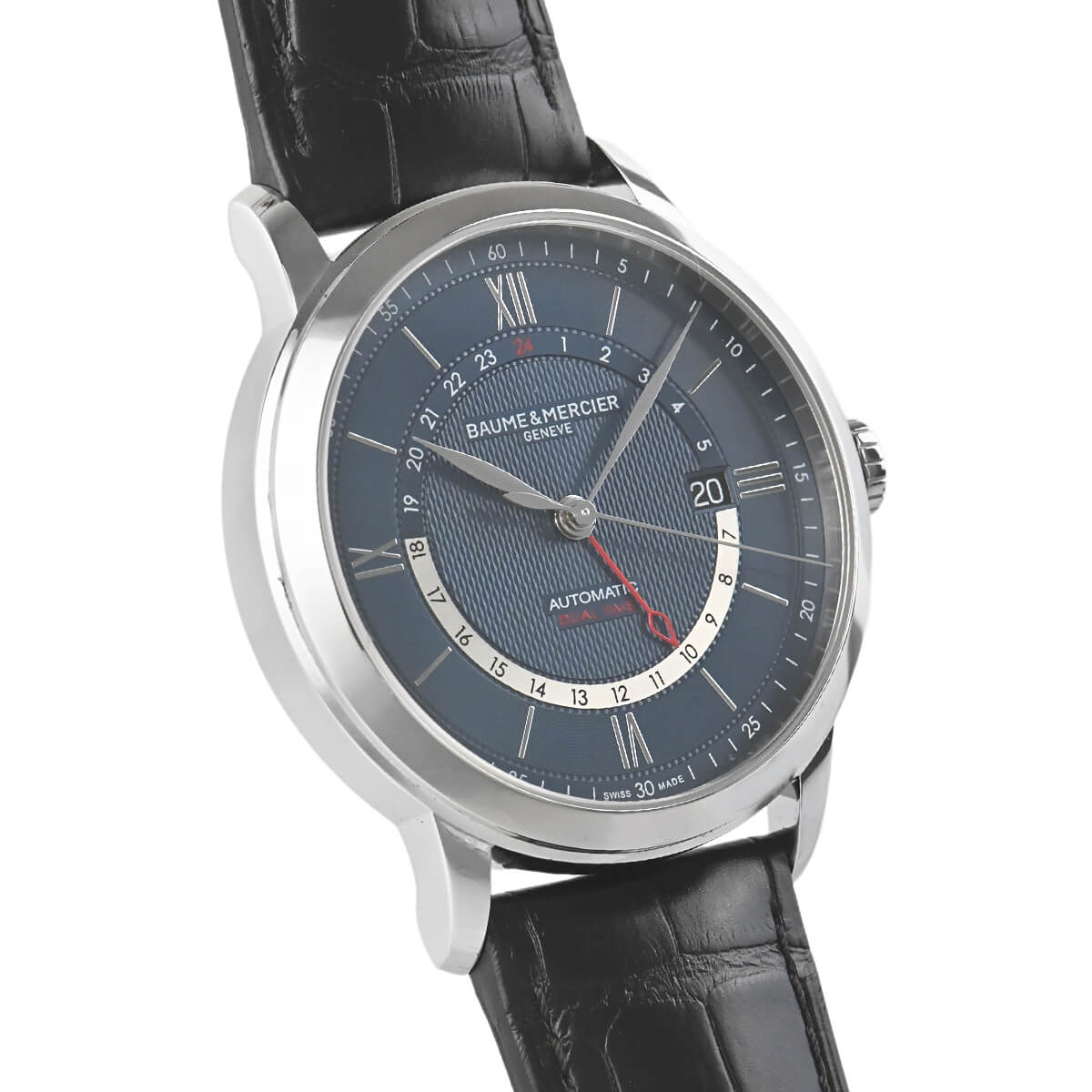 落ち着いたデザインが魅力的な「クラシマ デュアルタイム」。さまざまな機能やコンプリケーションをモデル展開しているラインですが、こちらはビジネスシーンで重宝する2タイムゾーンモデルです。