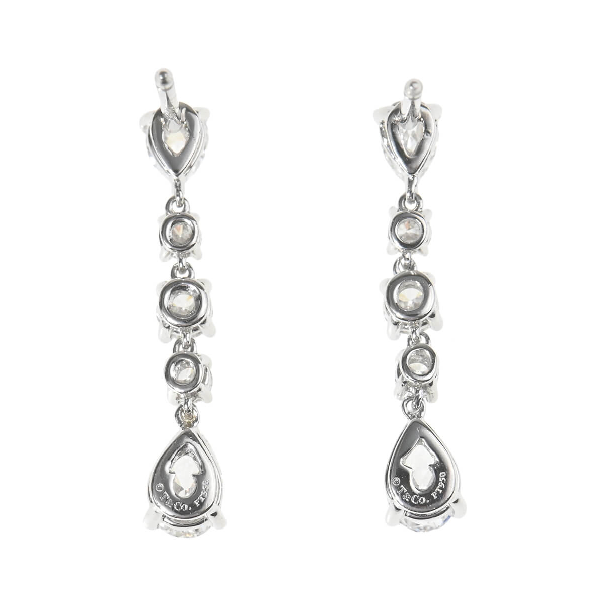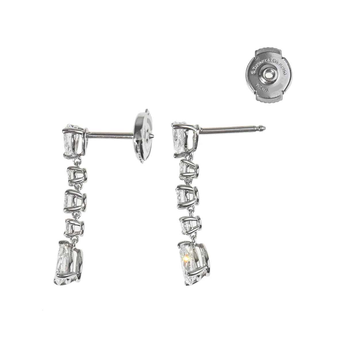 ダイヤモンドのエンゲージメントリングを永遠の愛のシンボルとして確立させた「チャールズ・ルイス・ティファニー」が1837年にアメリカで創業以来、息を飲むほど美しい傑作の数々を創造してきた『TIFFANY&Co.(ティファニー)』は、時代をリードしながら常に上質なエレガンスを表現し、今やジュエリーのスタイルのスタンダードとなりました。ペアシェイプとラウンド、異なるシェイプのダイヤモンドが連なって揺れるプラチナ製ドロップピアス。光の雫が揺らめくような、瑞々しくエレガントな美しさにあふれたピアスが、フェイスラインを優美に印象づけます。これだけで身に着けて洗練された存在感を楽しむのも素敵な、美しく上質なティファニーのダイヤモンドジュエリーです。