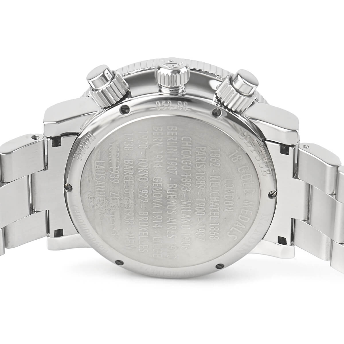 裏蓋にはユリス・ナルダンの輝かしい記録が刻まれています。