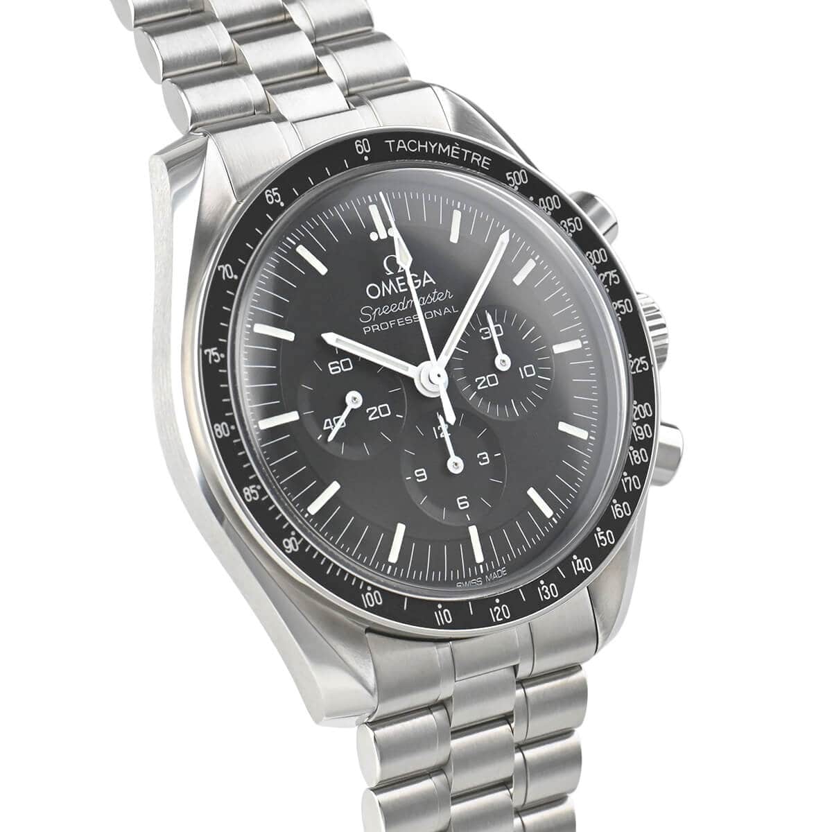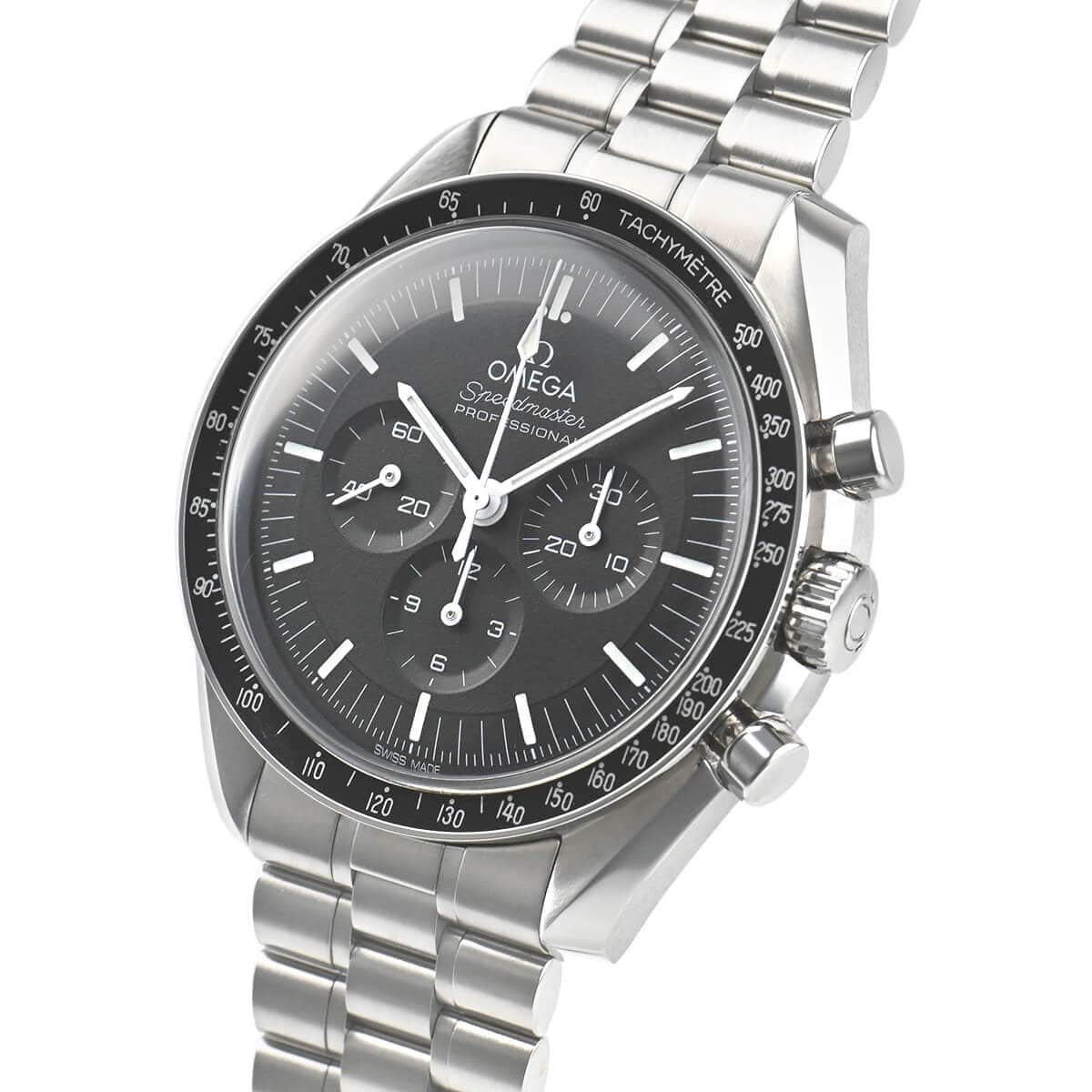 6度に渡る月面着陸プロジェクトの全てに提携された、伝説のクロノグラフ「スピードマスター プロフェッショナル」。陽極酸化処理が施されたアルミニウム製ベゼルリングには、実際に月面で着用された4thモデルのリングデザインに倣い、「ドットオーバー90」のデザインが採用されています。
