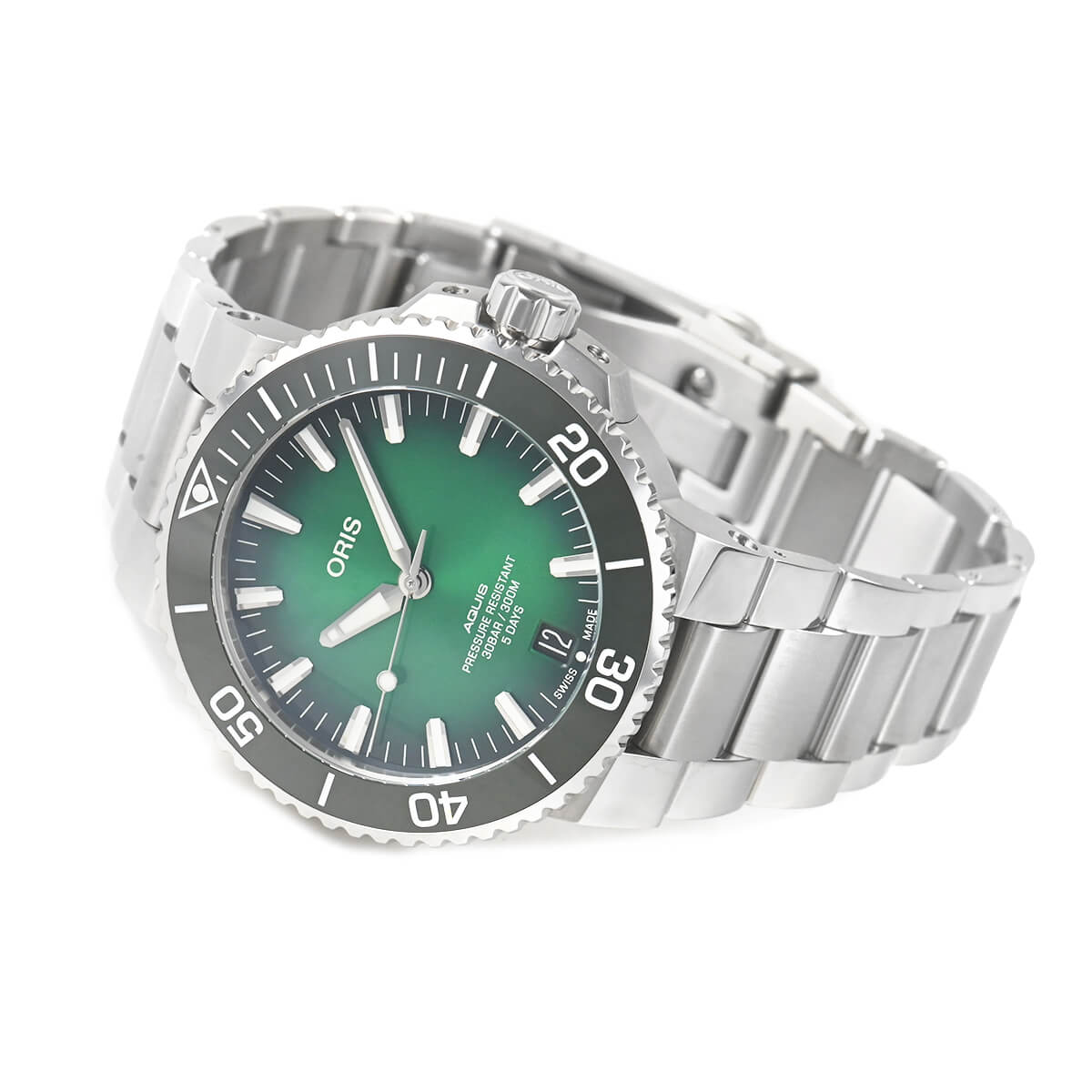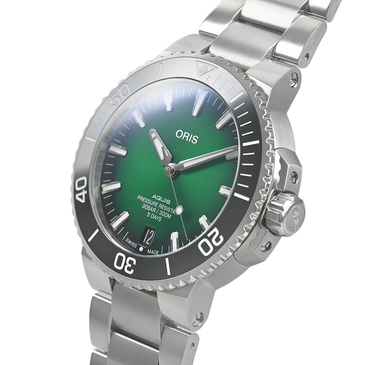 1904年創立という老舗のオリスが作り上げたダイバーズモデル「アクイス デイト」。こちらは、高耐磁性と5日間パワーリザーブを備えた自社開発ムーブメント【キャリバー400】搭載したモデル。