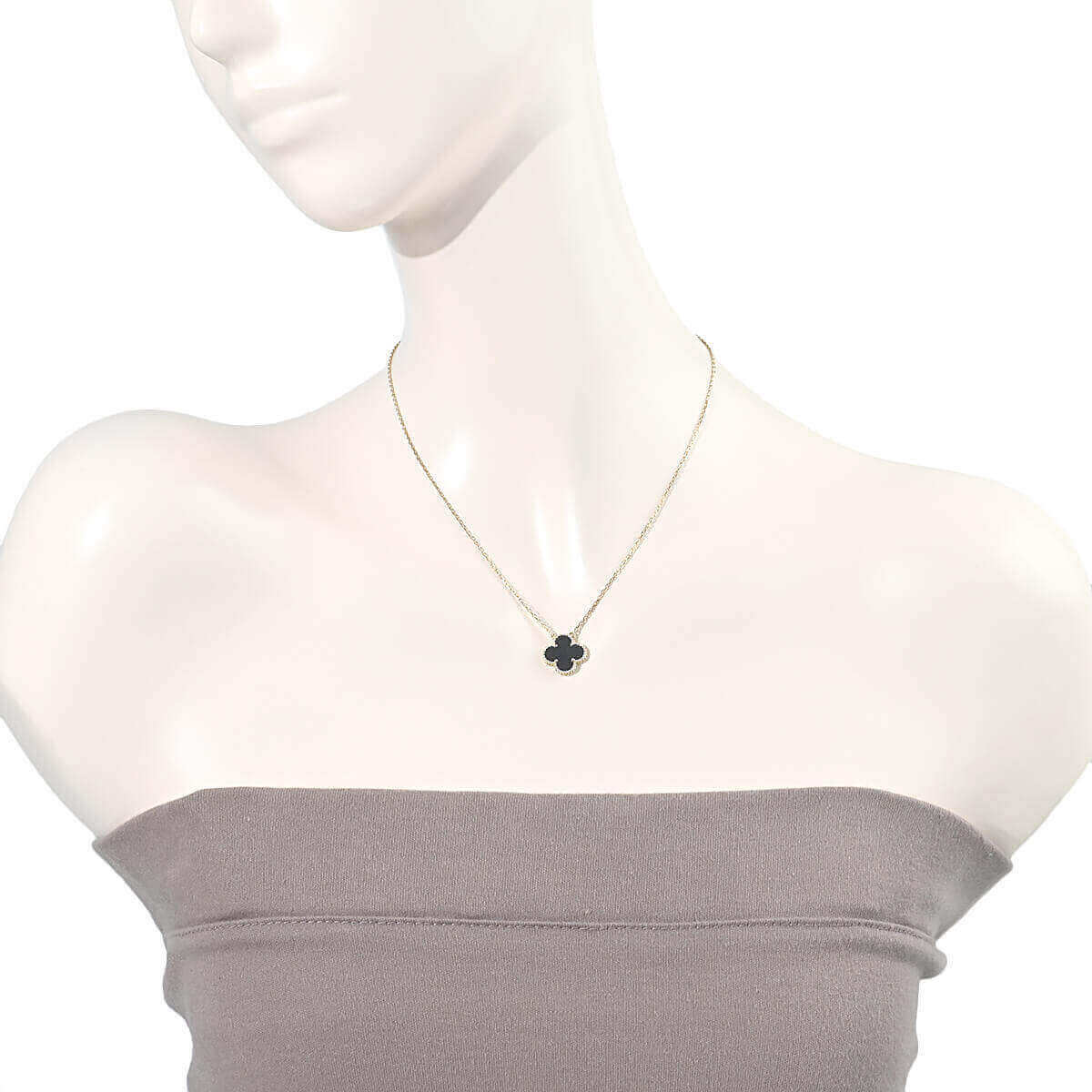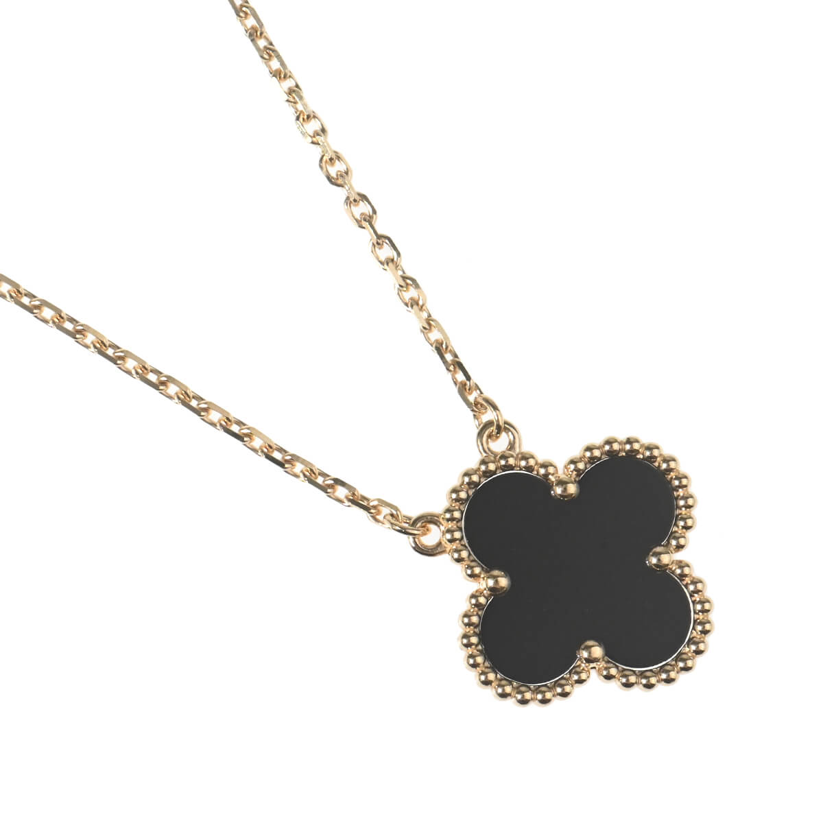 1968年に初めて誕生した幸運のシンボル「アルハンブラ」の特徴を受け継ぎ、『VanCleef&Arpels(ヴァンクリーフ&アーペル)』ならではの独創性と時を超えるエレガンスを湛える「ヴィンテージアルハンブラ」コレクションは、エレガントで清楚、控えめでありながら洗練された、メゾンを代表するアイコン。クールな印象の漆黒のオニキスと愛らしいモチーフ、そして周りを囲む可憐なゴールドビーズの掛け合わせが、“極上の甘さ”を生んでいるイエローゴールド製「ヴィンテージアルハンブラ」ペンダントです。たくさんつけてもしつこくなく、むしろ“素敵”にまとまる、不思議な個性をもつアルハンブラはコレクションで揃えていって、バリエーションを魅せるのも。ひとめでそれとわかるラッキーチャームを、どのタイミングで、どのカラーで迎えるかを考えるのも楽しい、エレガントに映えるハッピーな魅力にあふれたコレクションジュエリーです。