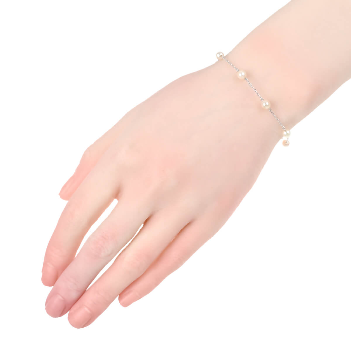 1893年に世界で初めて真珠の養殖に成功し、真珠に生涯を捧げ、「Pearl King(真珠王)」とまで呼ばれ歴史にその名を刻んだ「御木本幸吉」が、“世界中の女性を真珠で飾りたい”と夢を抱いて創業した『MIKIMOTO(ミキモト)』。以来、養殖真珠のオリジネーターとして120年以上も真珠の魅力と向き合い、“真珠と言えばMIKIMOTO”と言われるほどに誰もが知る、日本を代表する世界のジュエラーとなりました。小さいながらも優しく柔らかな光を放つ8粒の愛らしいパールが繊細なチェーンにステーションセッティングされた、ホワイトゴールド製ブレスレットです。動くたびリズミカルにパールが揺れるブレスレットは、手元を可憐に、清楚に印象づけます。