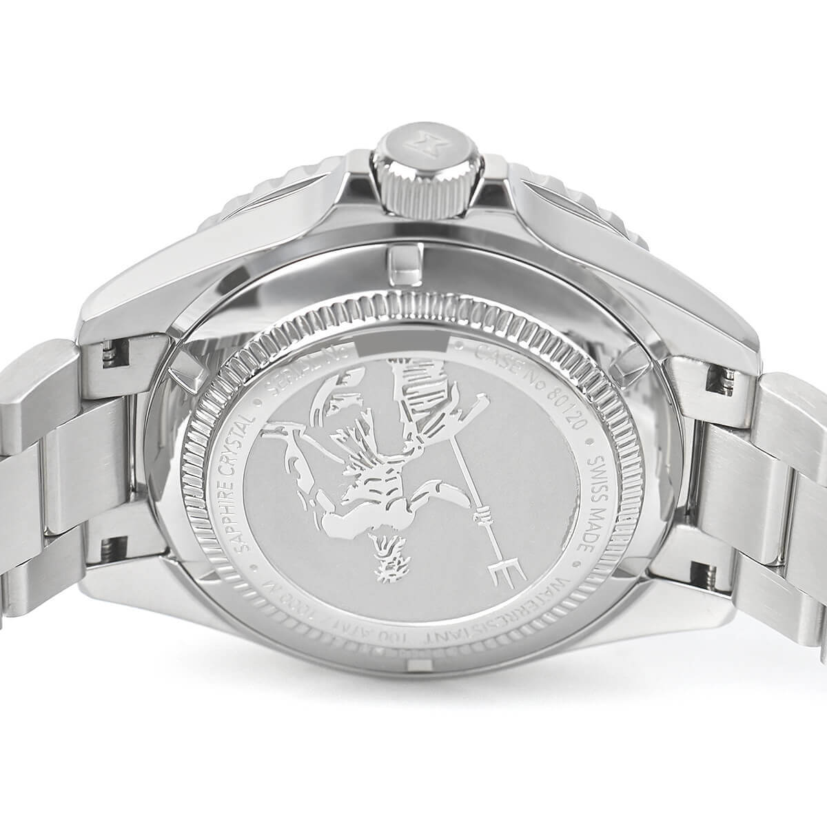 ローマ神話におけるその神の名“ネプチューン”をモデル名の由来とし、ケースバックにはその姿を刻印しています。