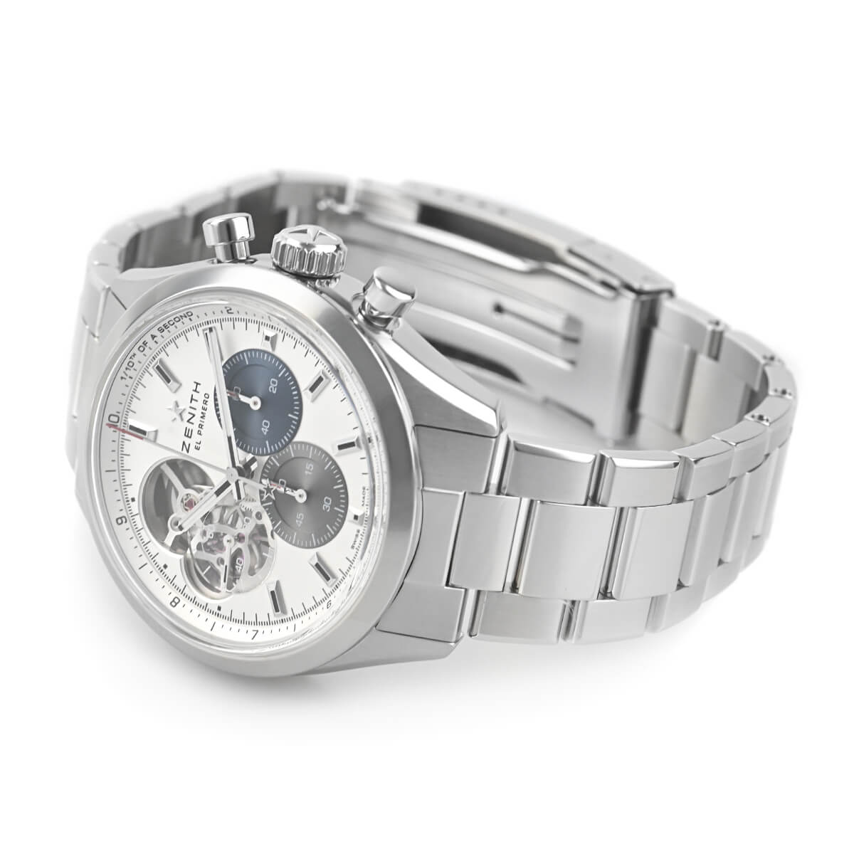 1969年発表当時のエルプリメロに現代のゼニスのシンボルであるダイヤルをくりぬいた「窓」を融合させた「エルプリメロ クロノマスター オープン」。現在まで続く自動巻きクロノグラフの名機「エルプリメロ」の歴史を表した一本と言えます。