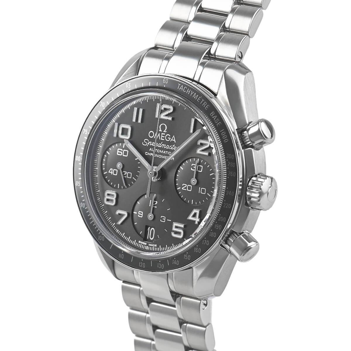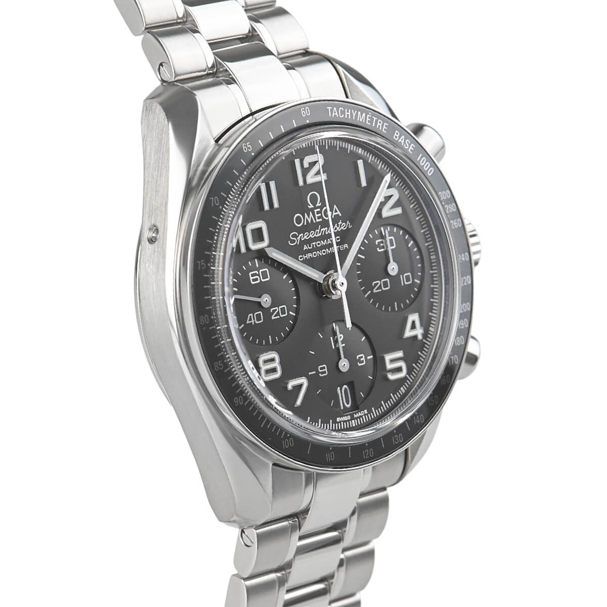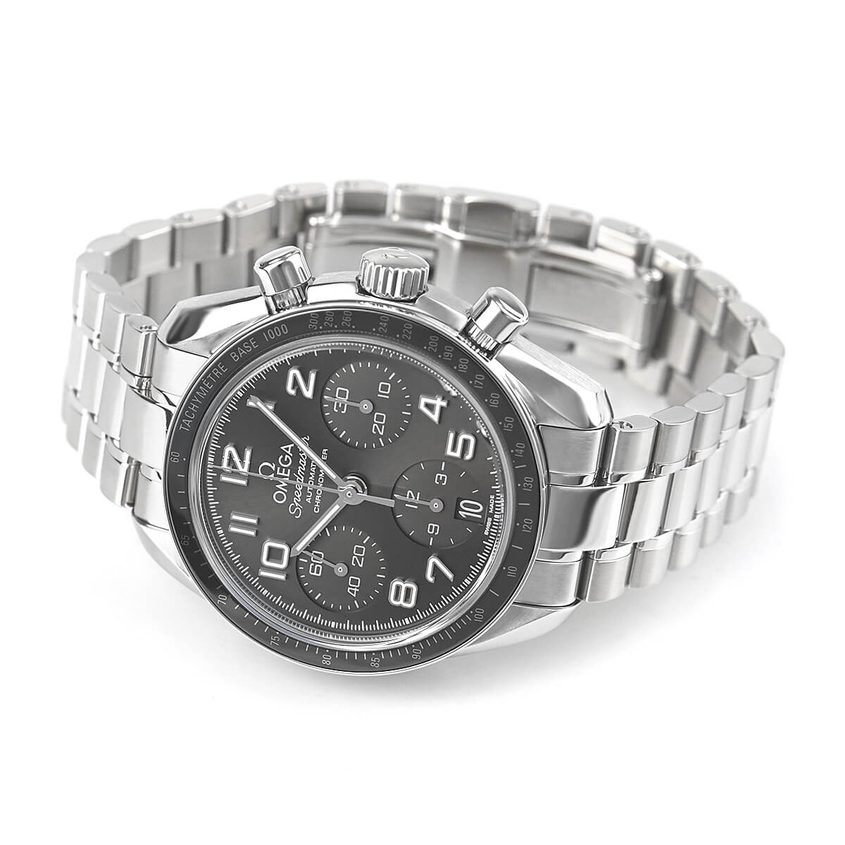 世界中のクロノグラフの中でもムーンウォッチとして絶大な知名度を誇るスピードマスター。こちらはブラックのベゼルとグレーのダイアルが爽やかな印象の「324.30.38.40.06.001」。