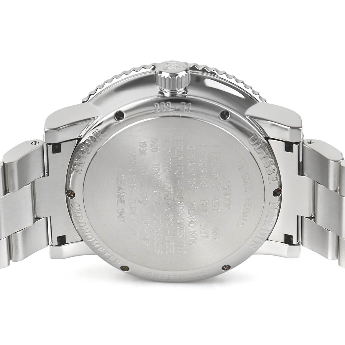 こちらのモデルの裏蓋にもユリス・ナルダンの栄光の歴史が刻まれています。