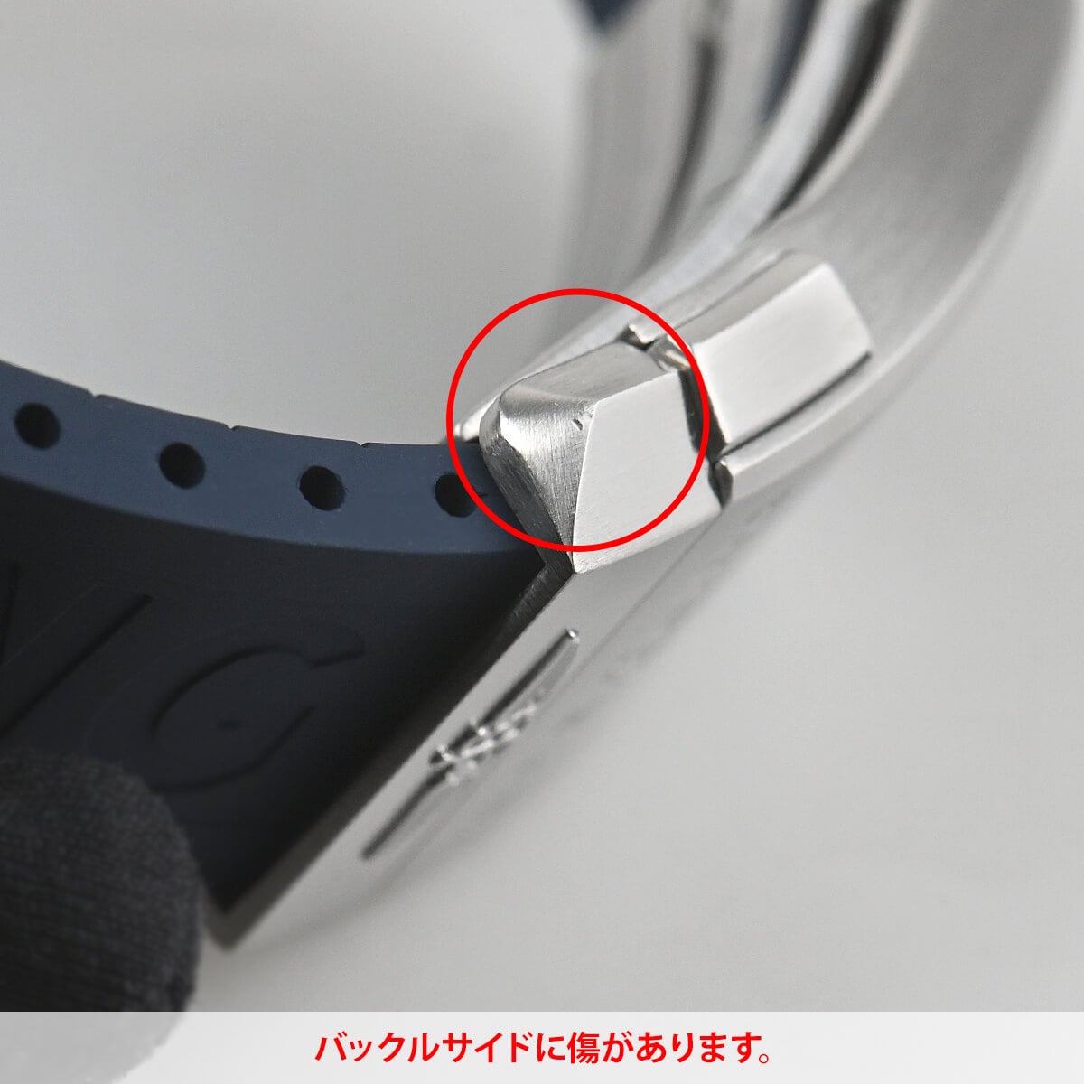 当店にてメンテナンスと外装仕上げを行っておりますが、ベゼルの9時位置とバックルサイドに傷がございます。