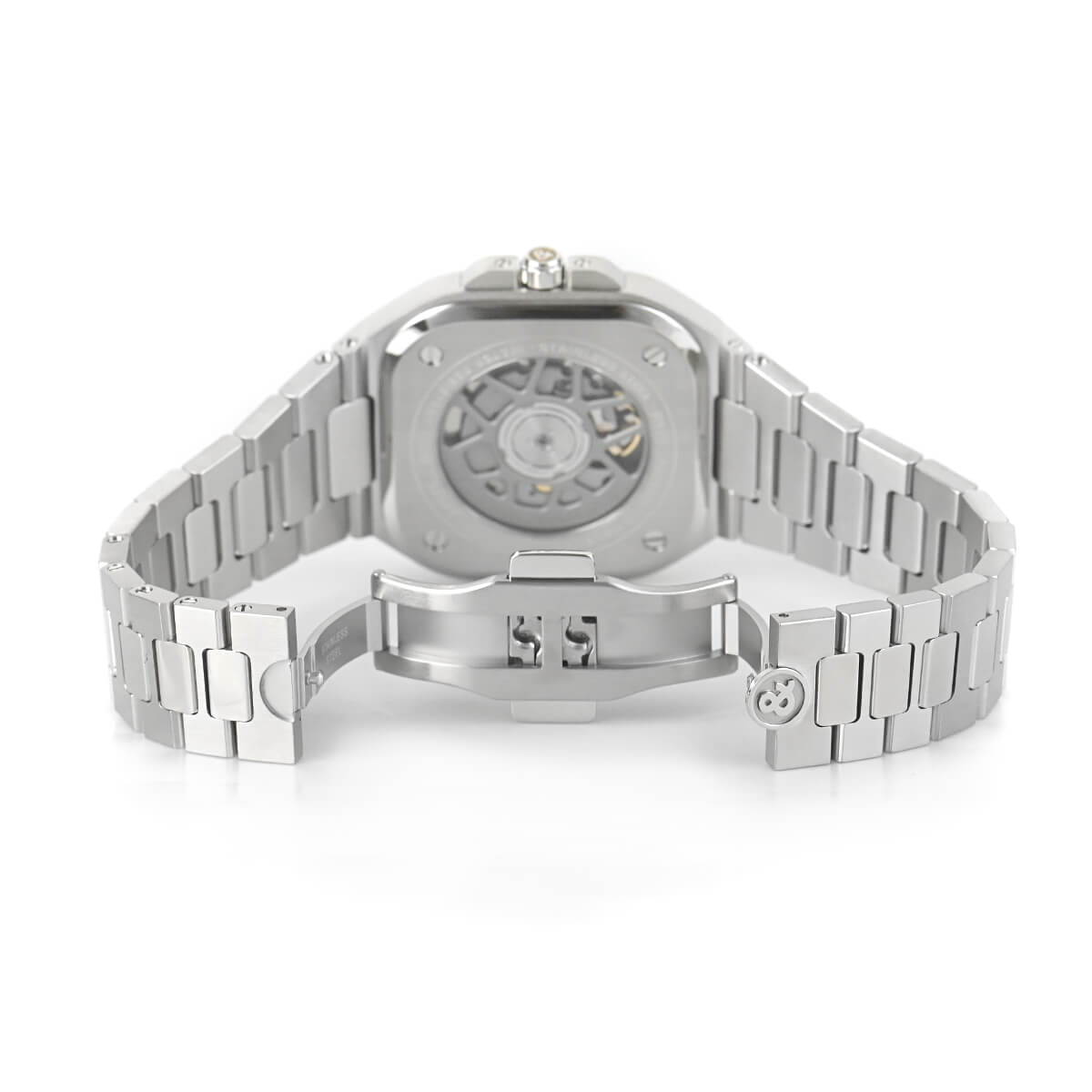 また、ケースから流れるように繋がったブレスレットは頑丈で重厚感のある作りとなっており、ハードにお使い頂けるかと思います。