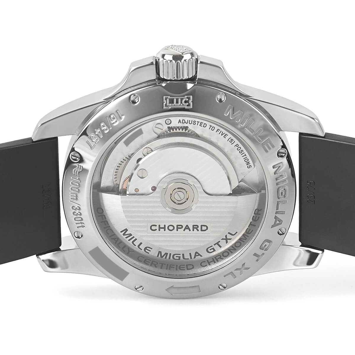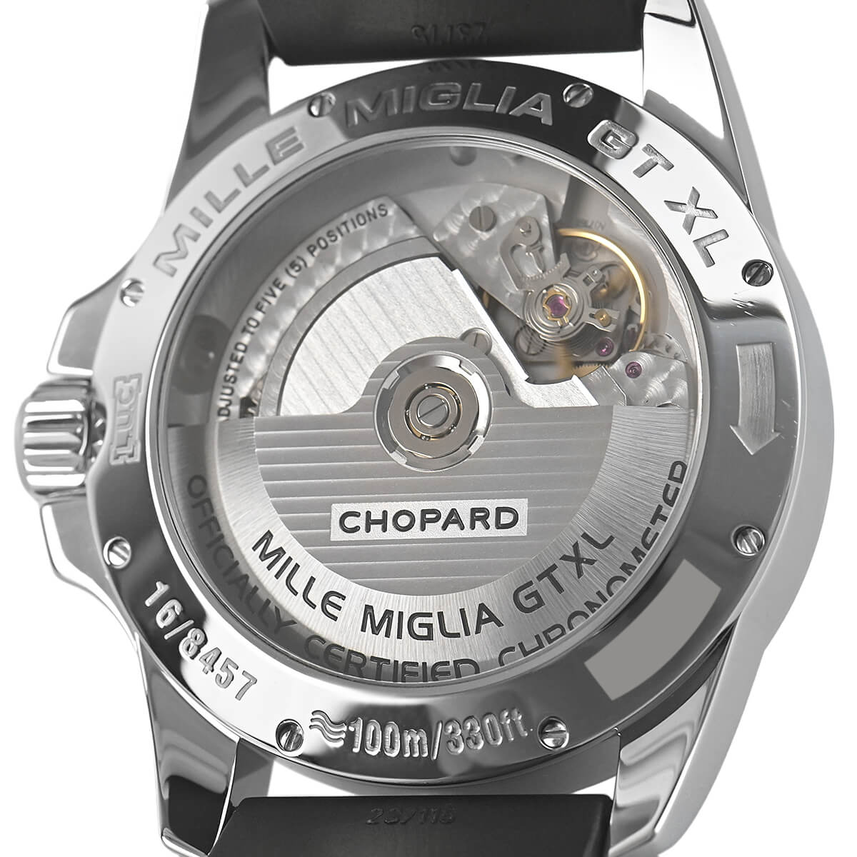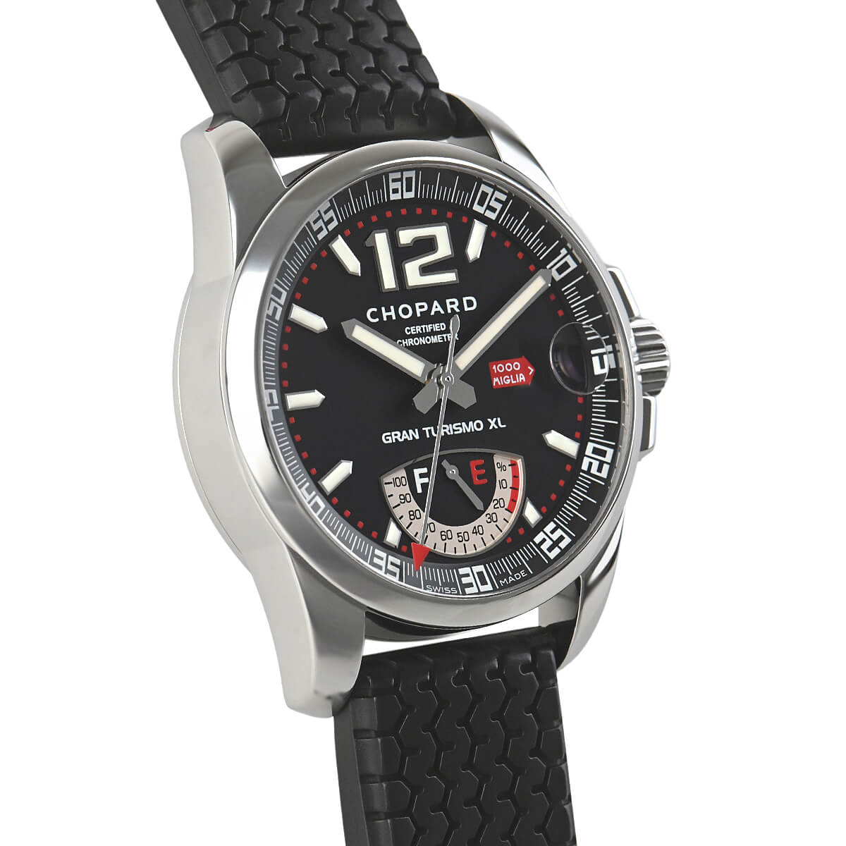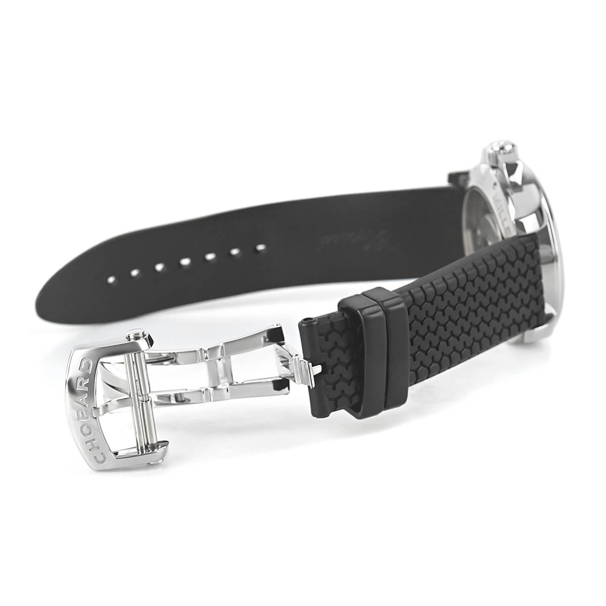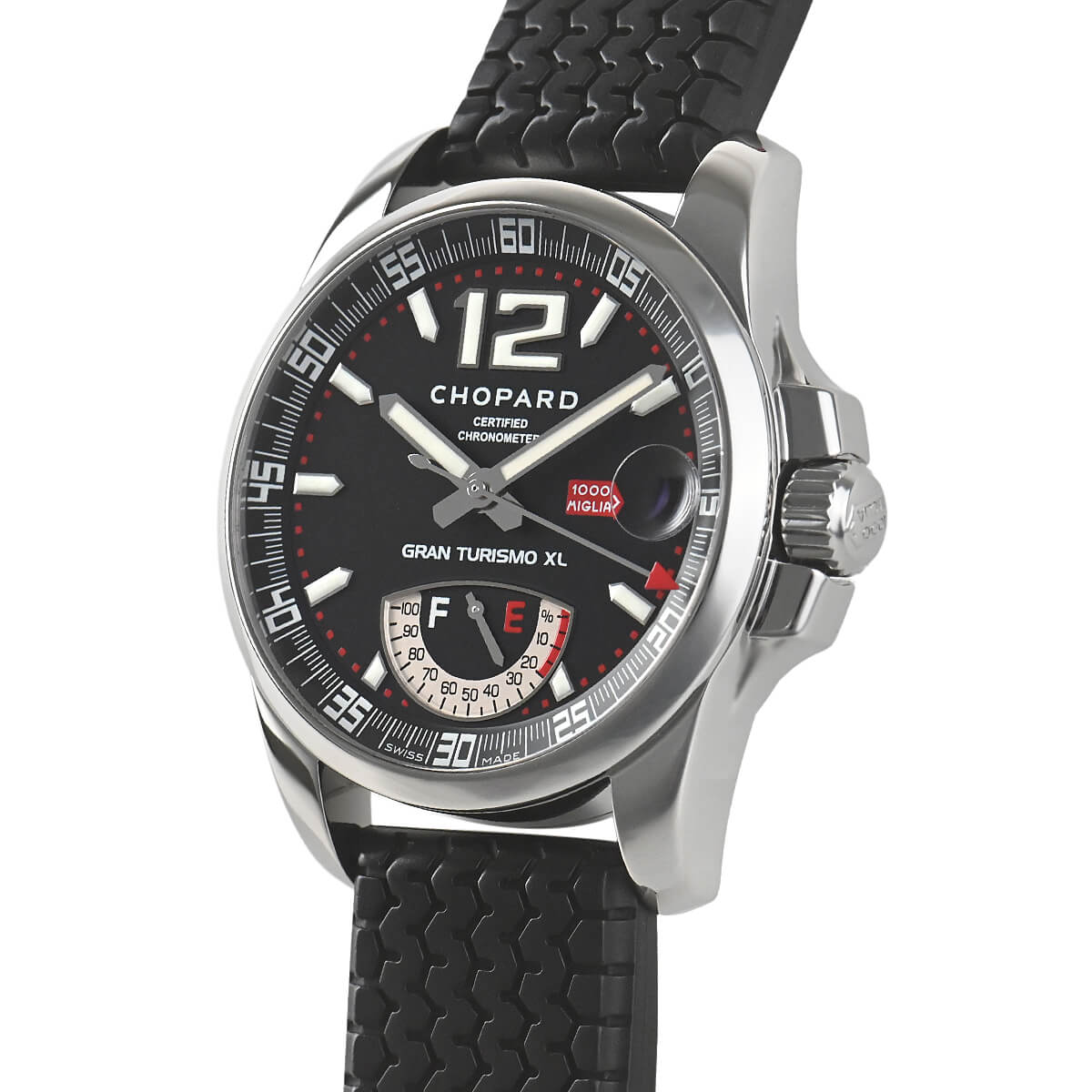 有名なヴィンテージカー・レースであるミッレミリアを記念して作られたモデル「ミッレミリアグラントゥーリズモ XL」。ダイヤルにはその名の由来になった1000mile(ミッレミリア)がデザインされており、純正のラバーベルトは1960年代にダンロップが製作したレーシングタイヤのトレッドをイメージしております。