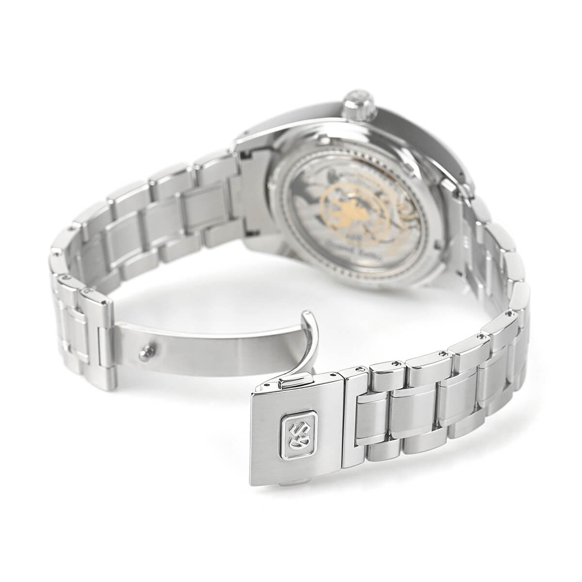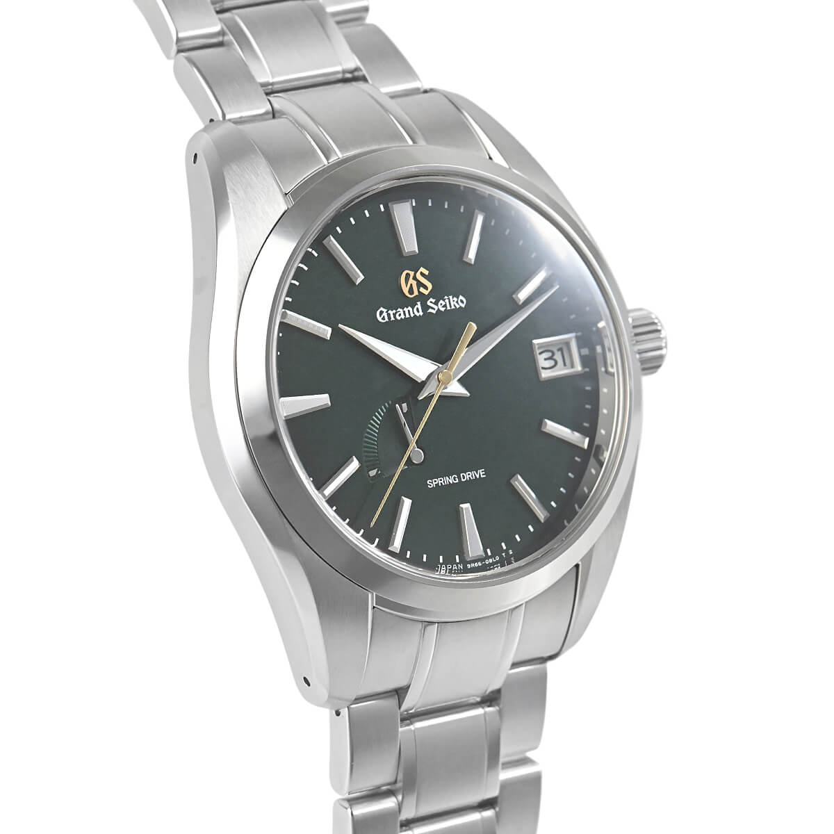 深みのあるグリーンのダイヤルにゴールドのGSロゴと秒針がマッチした品のあるモデルです。