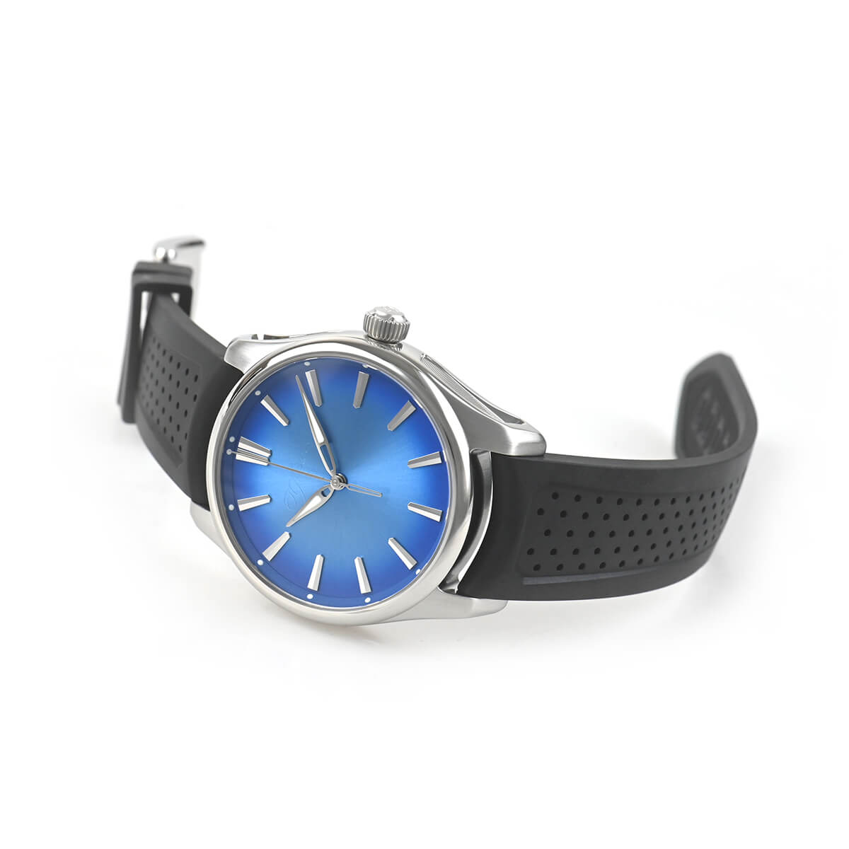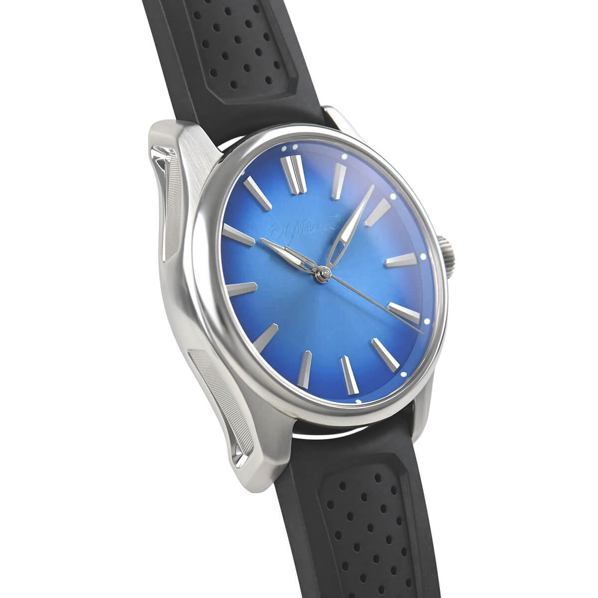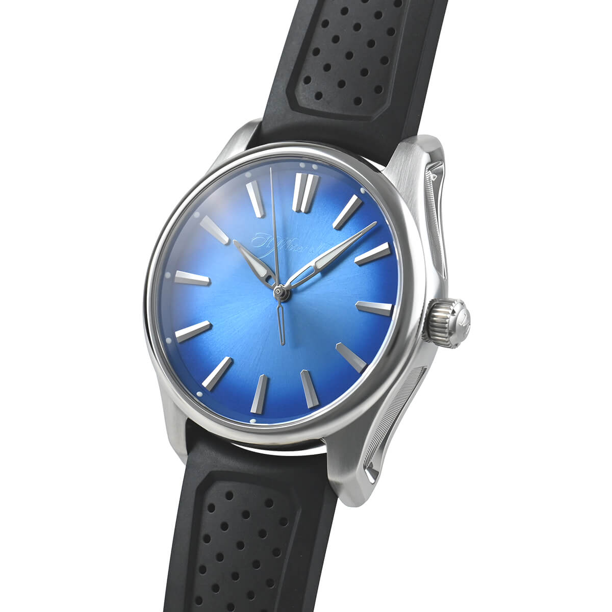 H・モーザーのモデルの中でも大きなサイズで、実用性を重視した「パイオニア・センターセコンド」。ダイヤルは、南の海を想わさせるブルーカラーのアークティックブルーフュメダイアルを採用。