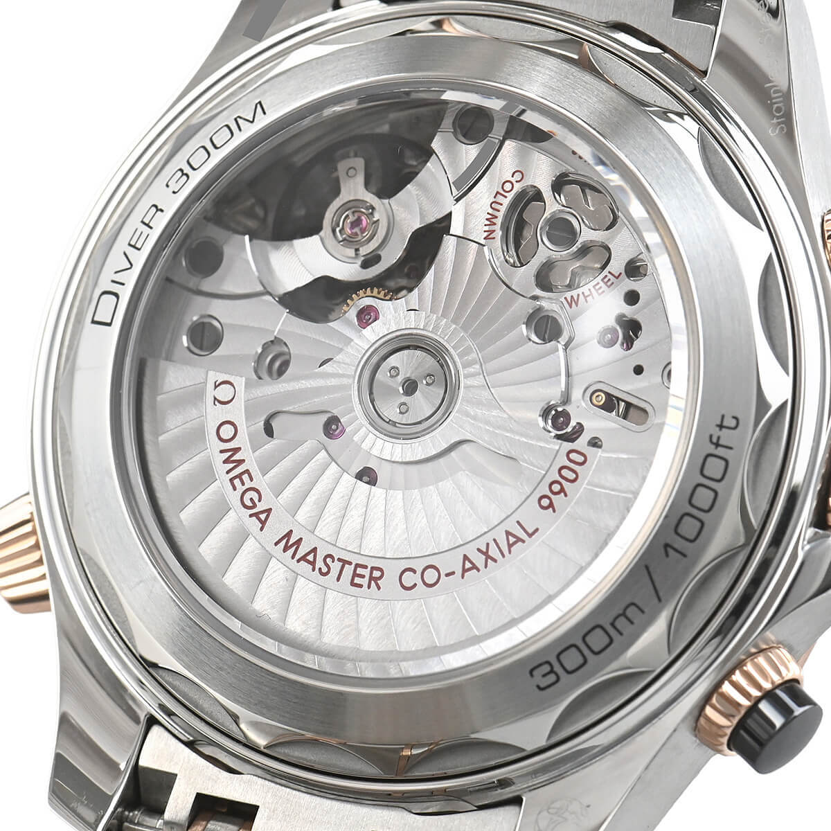 シースルーバックから覗くムーブメントには、15,000ガウス以上の超高耐磁性能を持ち、スイス連邦計量・認定局METASが認定したマスタークロノメーターのキャリバー9900を搭載します。