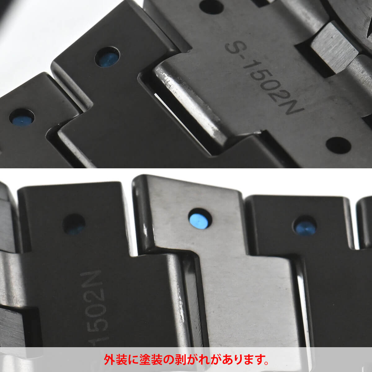 ダイヤモンドライクカーボンでコーティングしたブラックをベースに、バンドのピンやベゼルパーツにブルーIPコーティングが施されております。