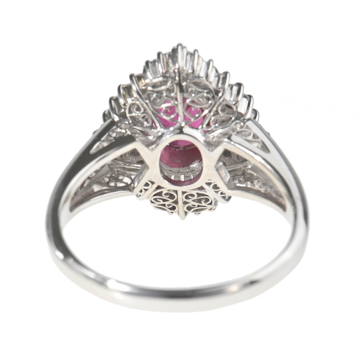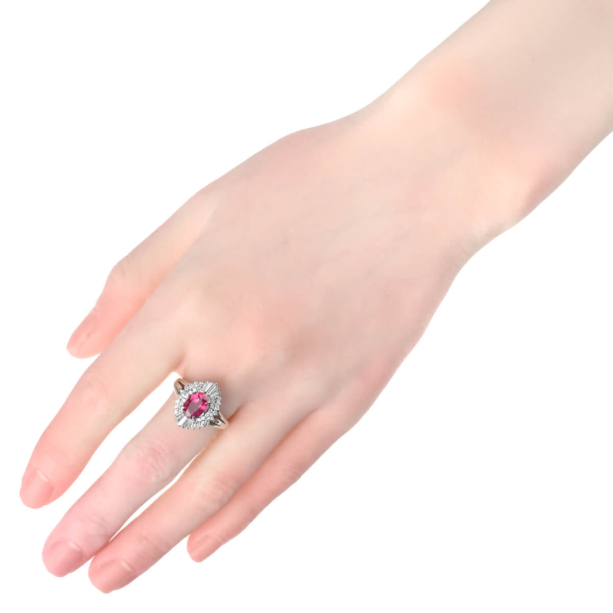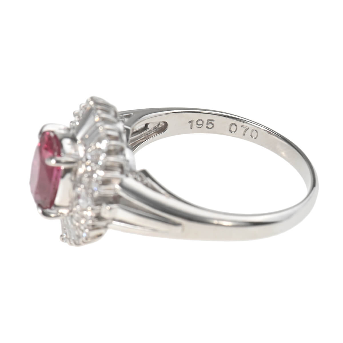 サンスクリット語で“宝石の王”を意味する「RATNARAJ(ラトナラジュ)」に由来し、“赤”を意味するラテン語の「RUBEUS(ルベウス)」から名付けられた宝石「ルビー」。歴史的にも最も重要なカラーストーンのひとつでもあるこの宝石の赤色は、不滅の炎と信じられ、情熱や深い愛情と結びつくと考えられてきました。周りを囲むテーパーやオーバル、シェイプの異なるダイヤモンドが、深紅の輝きを放つ1.95ctものルビーの美しさを一層惹きたてるプラチナ製リング。見るひとを魅了するルビーにまばゆい輝きを放つ上質なダイヤモンドをあしらい、指先を印象的に、優美に彩ります。情熱的に輝くルビーが美しいリングはデイリーのお出かけにはもちろん、ドレスアップや和装でのコーディネートも素敵です。