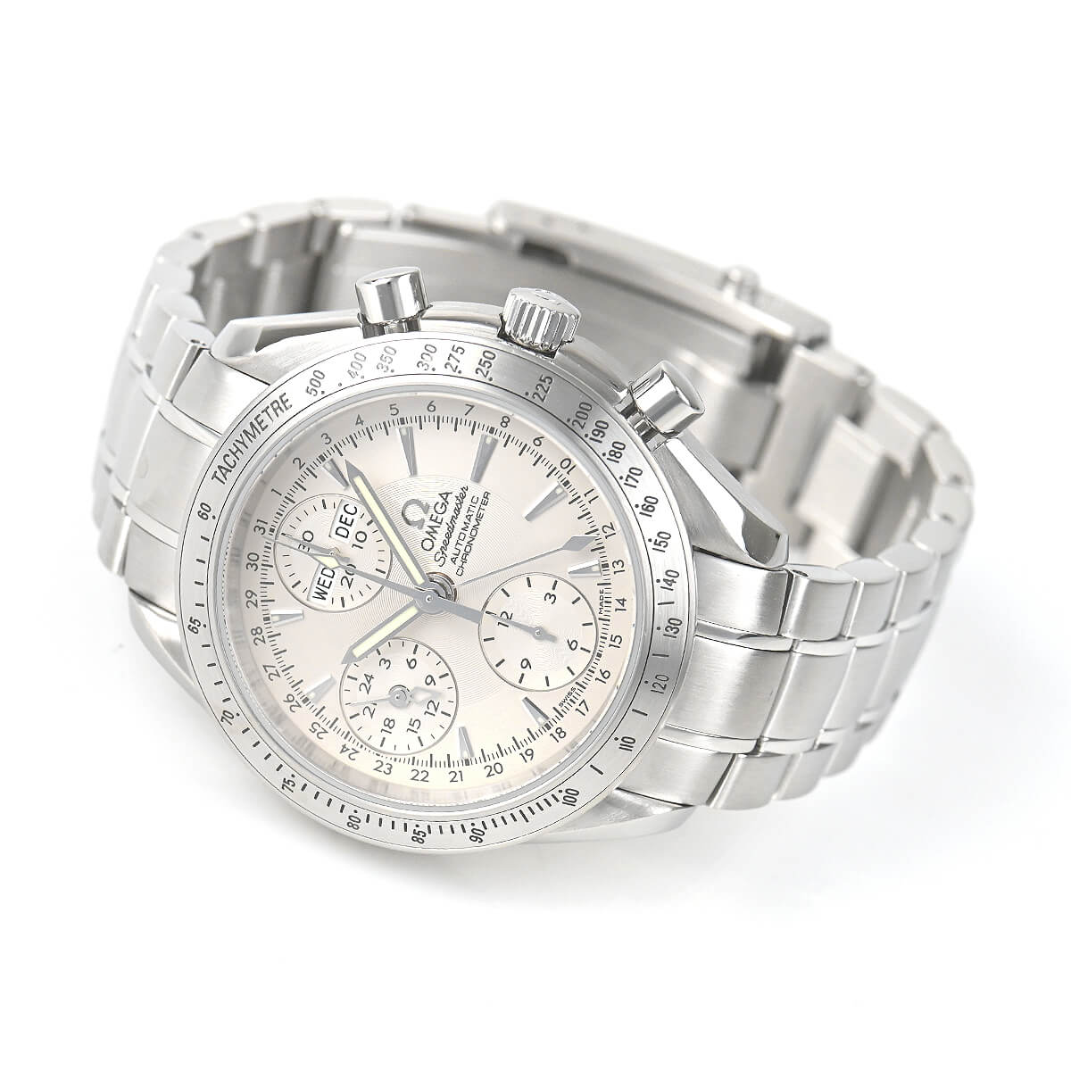スピードマスターのトリプルカレンダーモデル「3221-30」。ムーブメントにはバルジュー製のオートマチッククロノグラフムーブメントを採用しています。