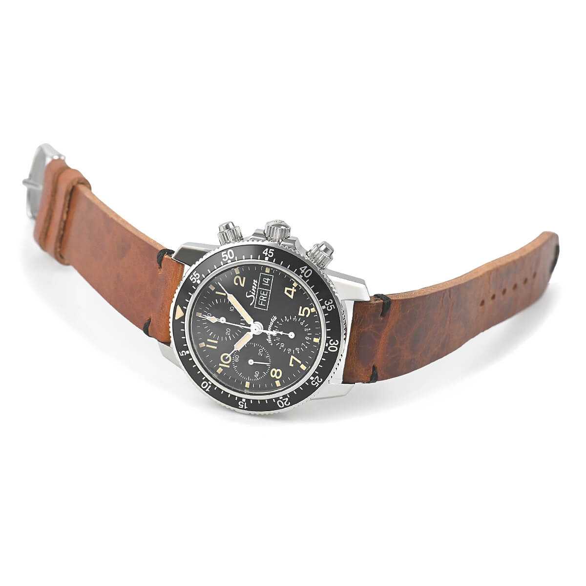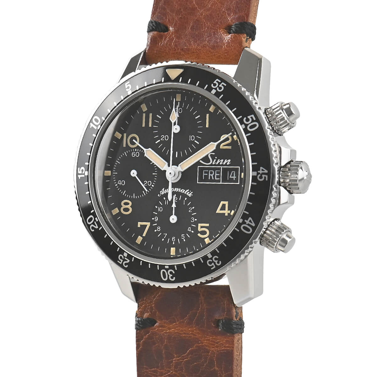 ジンの最もポピュラーなモデル「103」のサファイアクリスタル風防モデル「103.B.SA.AUTO」。ミリタリーウォッチの系譜に連なるパイロットウォッチで、Sinnの創設者であるヘルムート・ジンのパイロットとしての経験から、使いやすさを追及したモデルです。