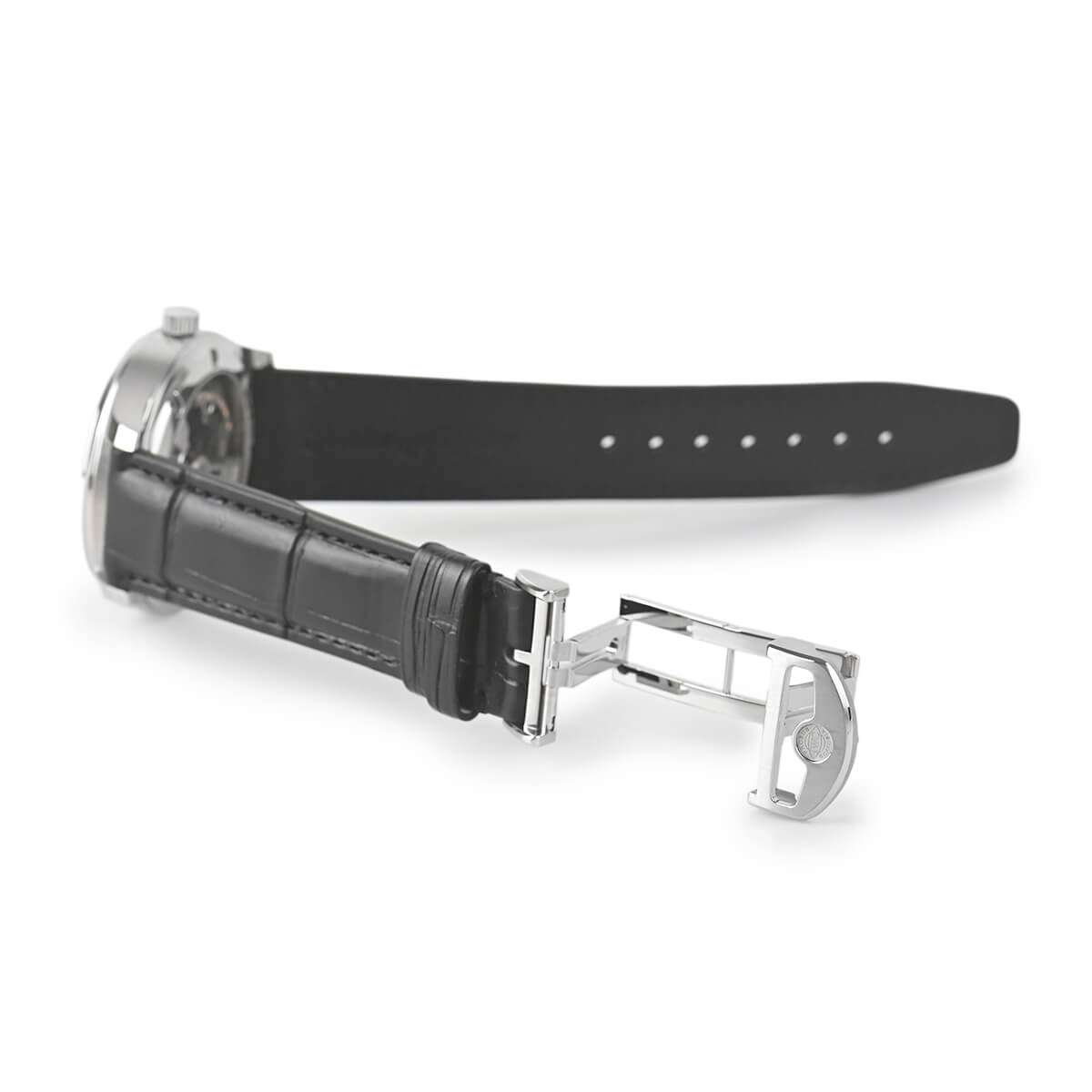 リーフハンドとアプライドインデックスを採用し、シンプルでありながらも機械式時計が持つ美しさが感じられる一本です。