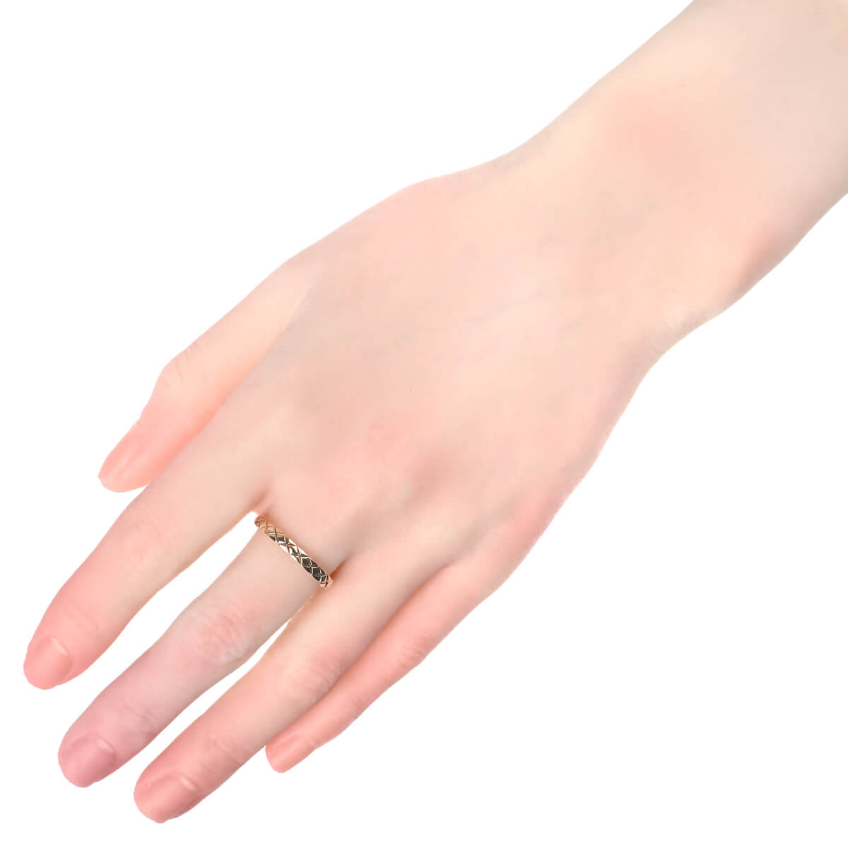 1955年以来、メゾンを象徴し続けるメゾンのシンボル、“マトラッセ”のキルティングパターンがゴールドに美しく刻まれた、アイコニックでモダンなベージュゴールド製リング。シンプルながらもモダンで存在感のある幾何学模様が、シャネルらしい個性を惹き立たせます。ジェンダーレスに使えるモダンでエッジィなデザインリングは、違う素材やボリュームとのコーディネートも。シンプルでありながらグラフィカルで優美な、シャネルらしいゴールドリングは、身に着ける人の魅力を際立たせます。