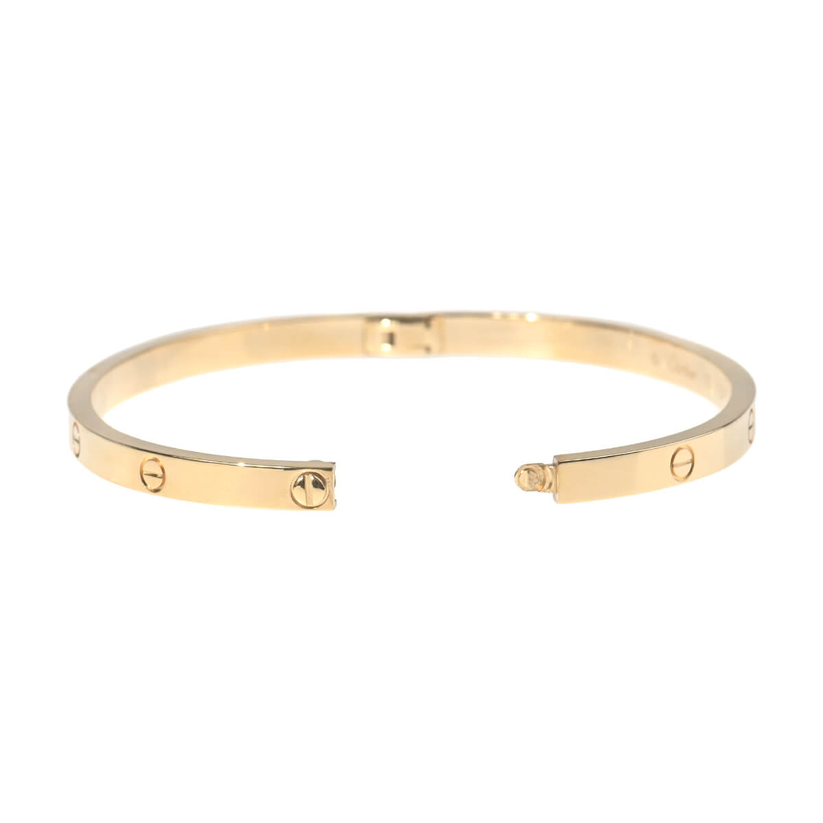 1969年、NYで誕生した『Cartier(カルティエ)』の「LOVE」コレクションは、既成概念を超えた愛を封じ込めるジュエリー。永遠に結ばれる絆のコレクションは、無駄のない端正なビス、完成されたシェイプ、その確固たるエレガンスが、時を経ても褪せることのないタイムレスな魅力を放ちます。端正なビスがデザインのアクセントになった、洗練されたフォルムが美しいSMサイズのイエローゴールド製オーバルシェイプブレスレット。艶やかに磨かれたマテリアルの美しさが際立つブレスレットは、1本ですっきりと洗練された存在感を楽しむのはもちろん、地金をミックスしてレイヤードするのもお洒落。本体から外れないビスを1か所、専用ドライバーで90度回すとロックが外れるこのブレスは、ぐっと着脱しやすくなったのも魅力のひとつです。