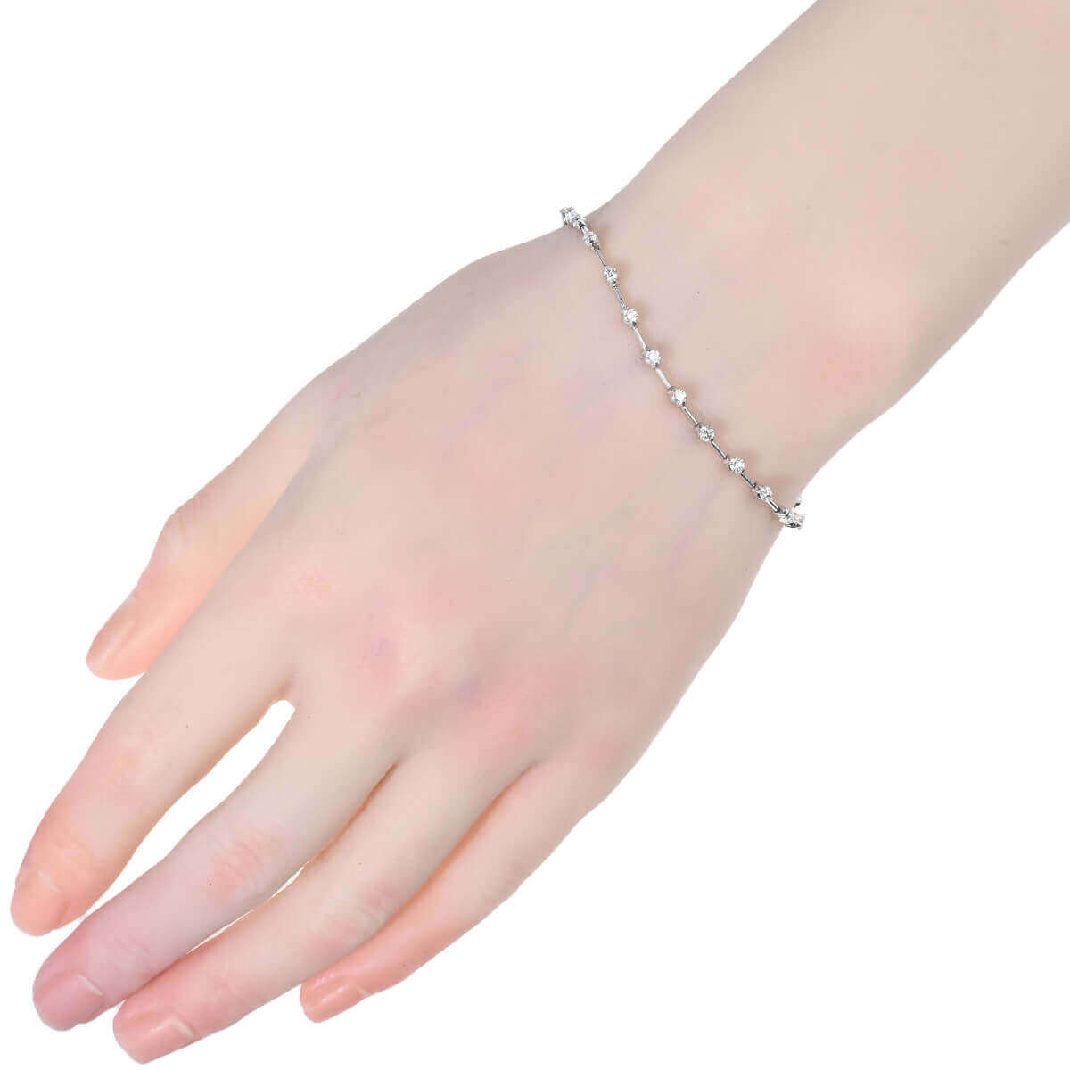 ダイヤモンドの卓越した専門知識という伝統を1世紀以上も受け継ぎ、ジュエリーデザインの革新やクリエイティブな才能を磨き続けるジュエリーブランド『DE BEERS(デビアス)』。ダイヤモンドの探索と採掘でも、他の追随を許さぬ専門性を有するトップクラスのダイヤモンド企業として世界に名を知られています。そのデビアスがプロデュースした『LINE(ライン)』の、ホワイトゴールド製テニスステーションブレスレット。トータル1.25ctのラウンドダイヤモンドがホワイトゴールドのバーと交互に連なる、ステーションデザインのブレスレットです。存在感がありながら華美になりすぎない、控えめで洗練された美しさをもつライン定番のデザインブレスレットです。