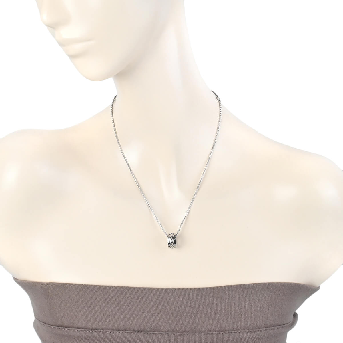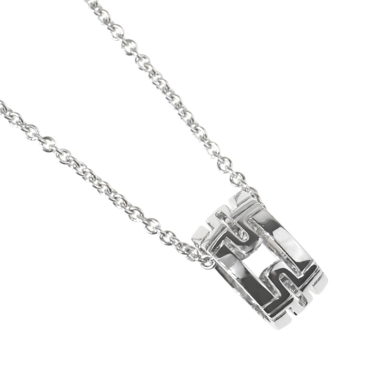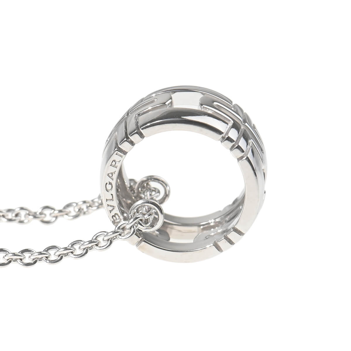 イタリア語で“かっこ”の意味を持ち、ローマの敷石のトラバーチンからインスピレーションを引き出しデザインされている、『BVLGARI(ブルガリ)』「パレンテシ」コレクション。金属製の連結パーツからブルガリならではのこだわりが感じられる「パレンテシ」のジュエリーは、ローマ建築の不変性にインスパイアされています。1970年代末に誕生し瞬く間にブランドのトレードマークとなった、一目でそれとわかる永遠の都の無限のスピリットが映し込まれたモチーフが胸元で揺らめく、ホワイトゴールド製「パレンテシラウンド」ペンダント。重厚感と軽やかさ、相反するものが共存したデザインが、より一層ブルガリの個性を引き出しています。程よいボリュームがありながら軽やかに身につけられるペンダントは、ユニセックスに。幾何学性と滑らかさが融合したシャープな曲線が描く大胆なデザインながら、シンプルで洗練されたペンダントです。