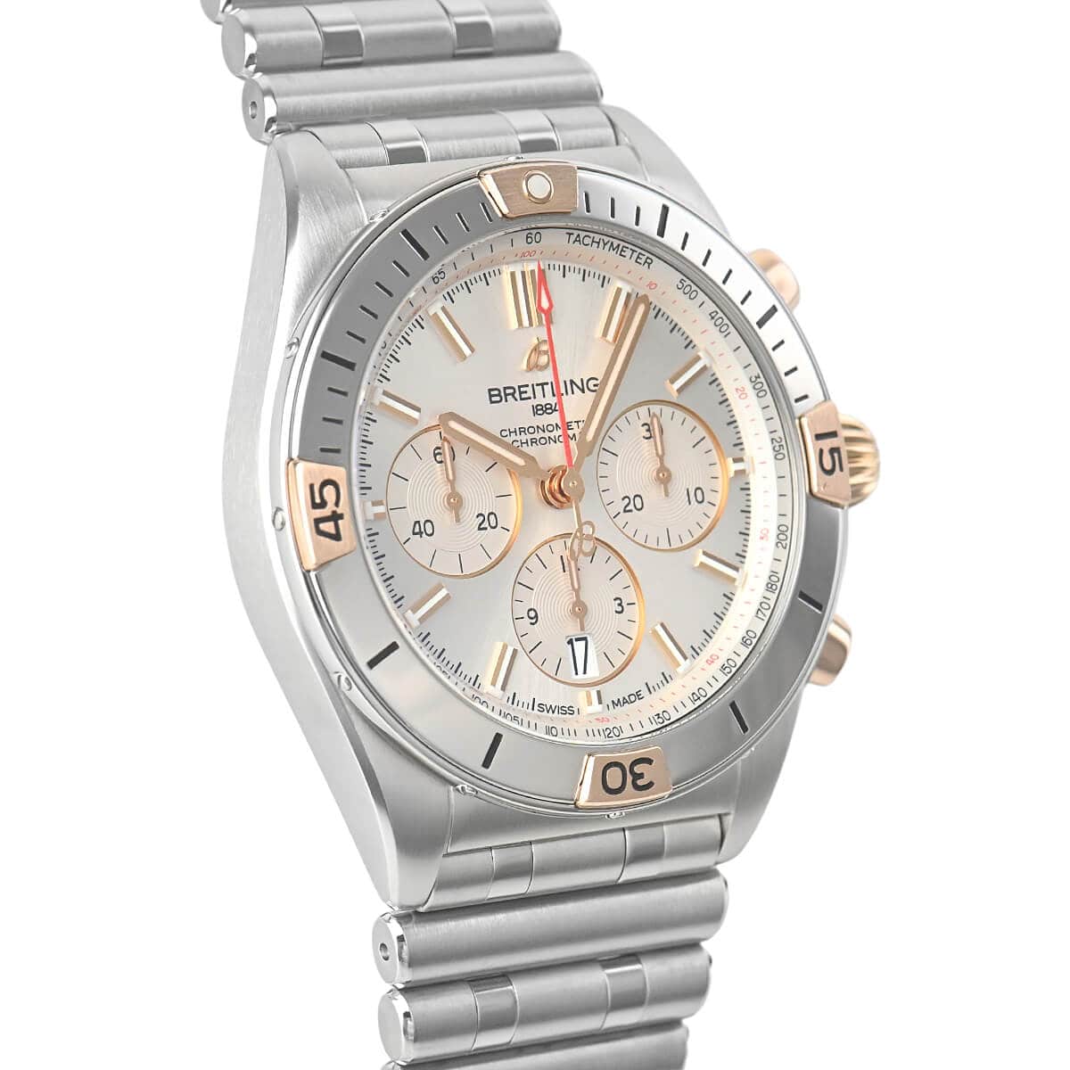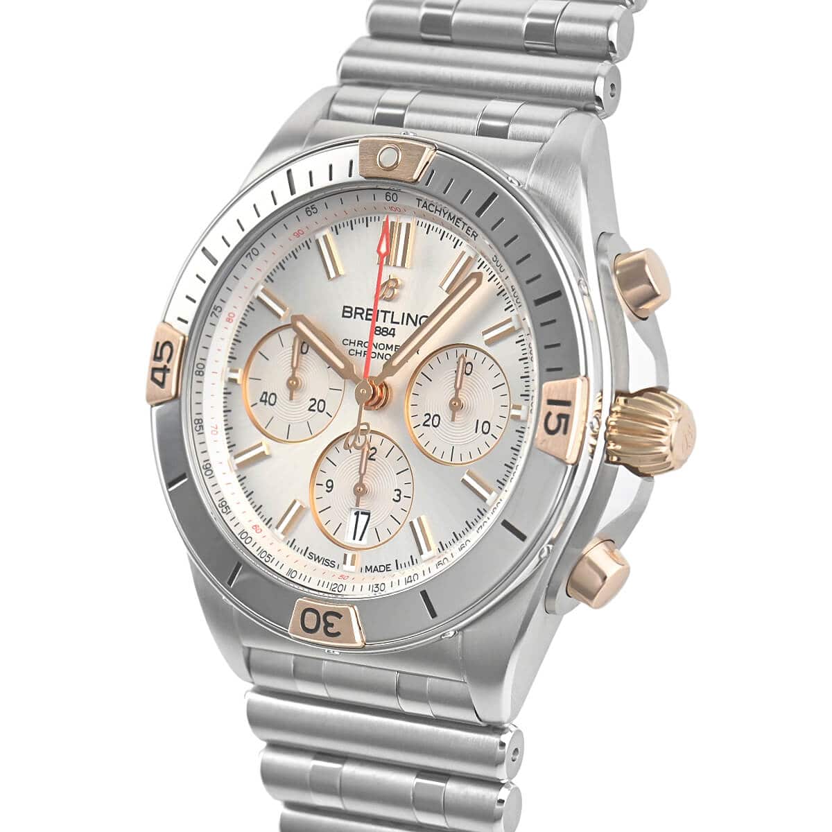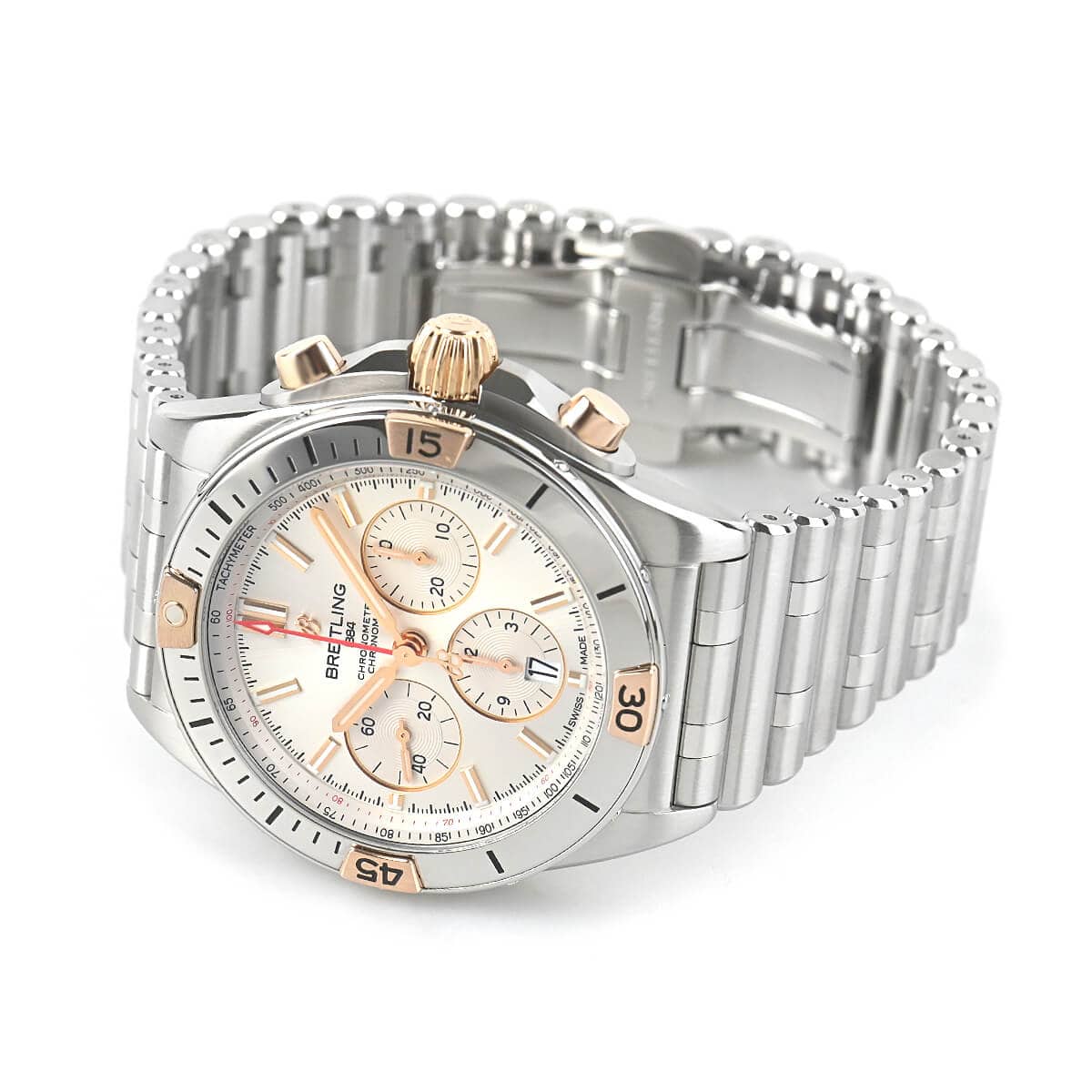 こちらの【クロノマットB01 42】は、初代クロノマットにあったオニオン型リューズ、回転ベゼル上に設けた4つのライダータブ、ルーローブレスを現代的にアップデートさせたデザインで体現したモデル。