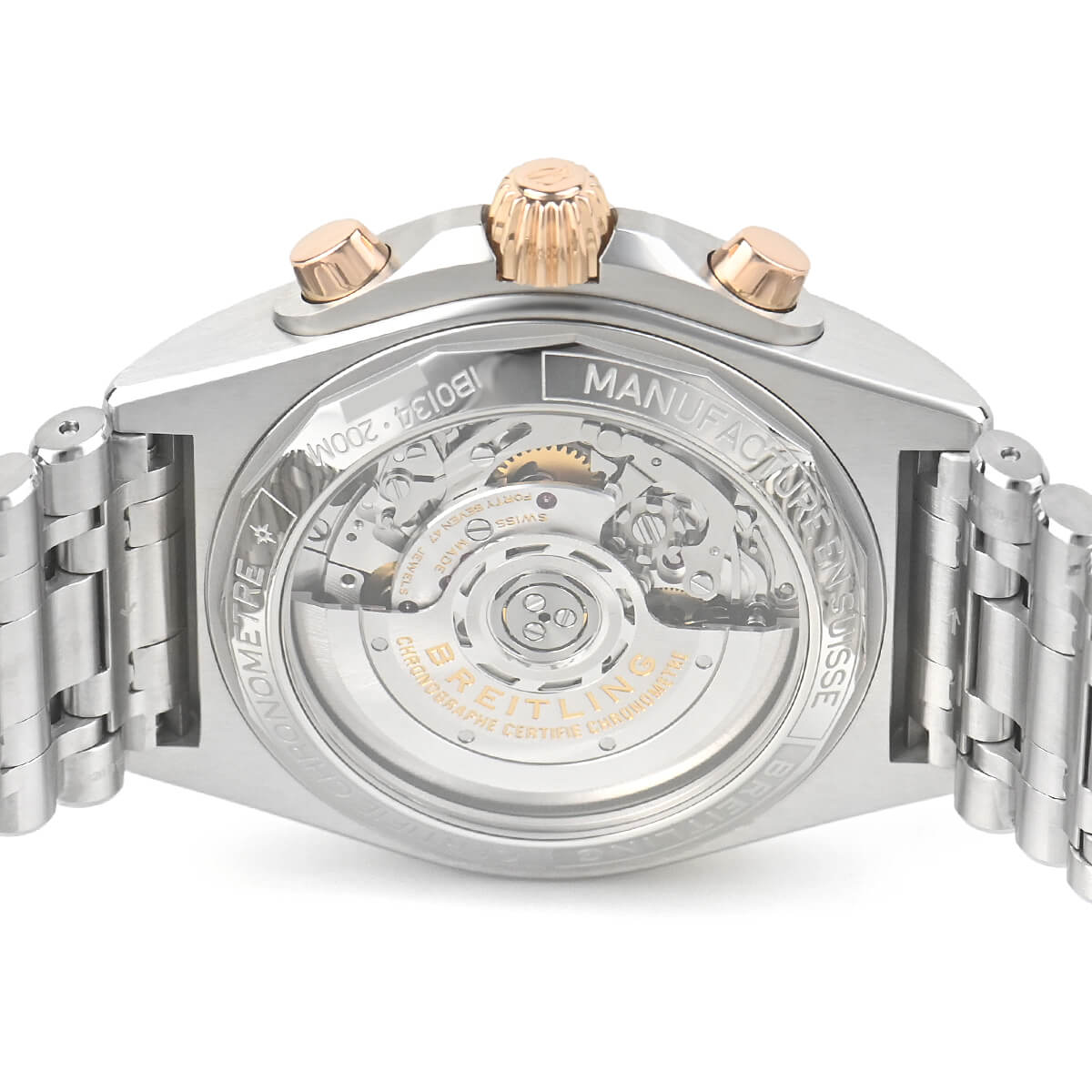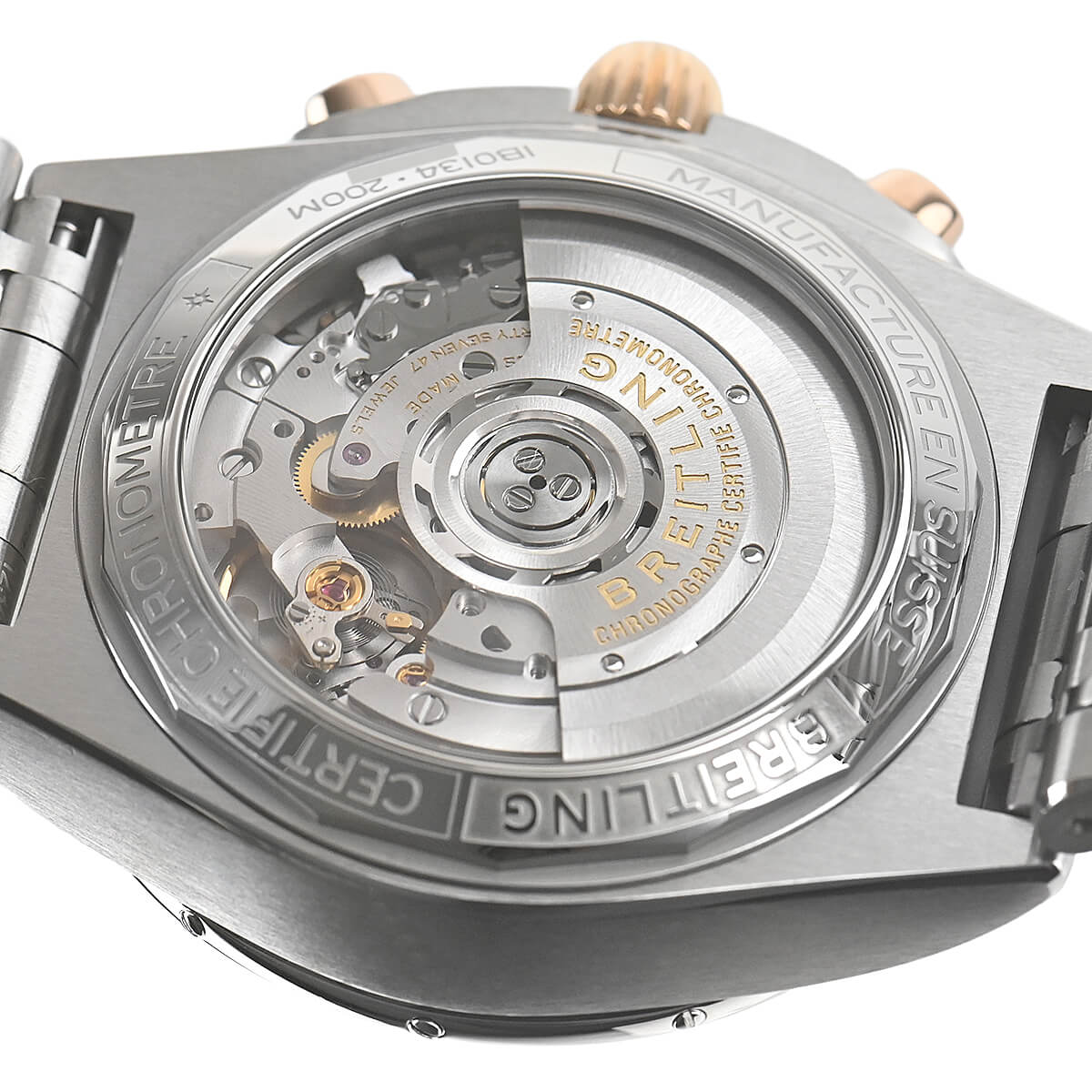 ムーブメントには70時間以上ものロングパワーリザーブを誇り、ブライトリングの拘りが詰まった自社製自動巻きキャリバーB01を搭載します。