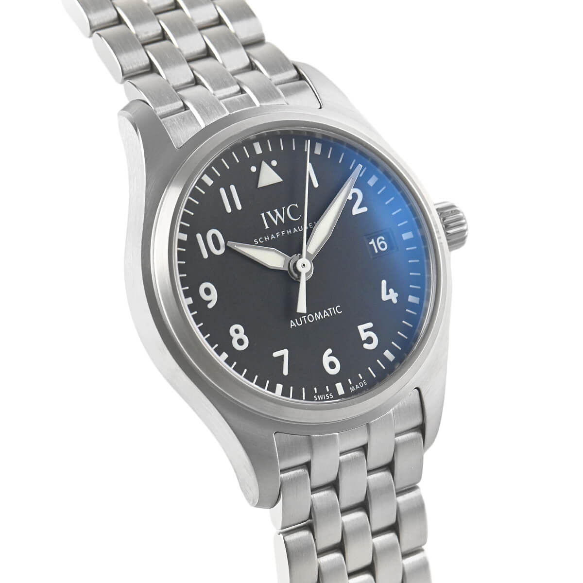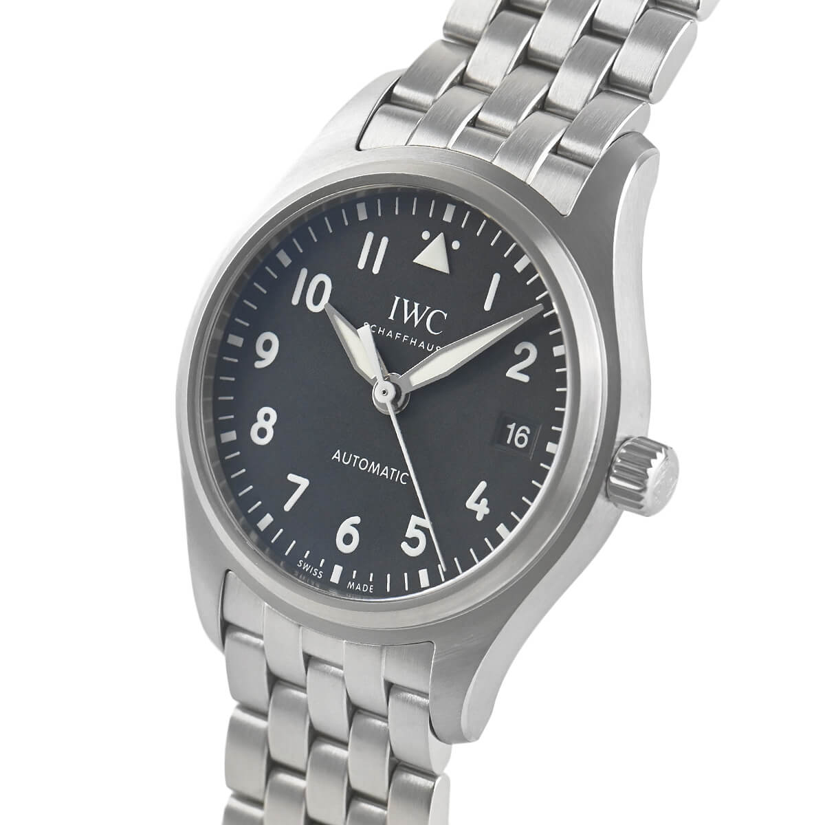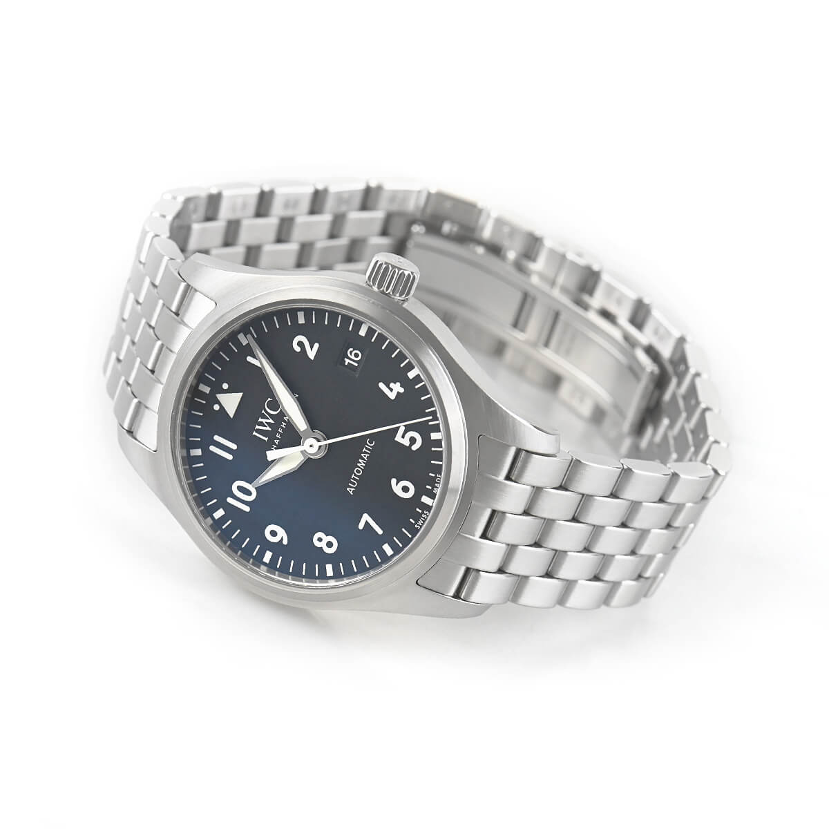 36mmケースの「パイロットウォッチ・オートマティック36」。時・分・秒の他にはデイト表示機能のみとシンプルなデザインとなっています。
