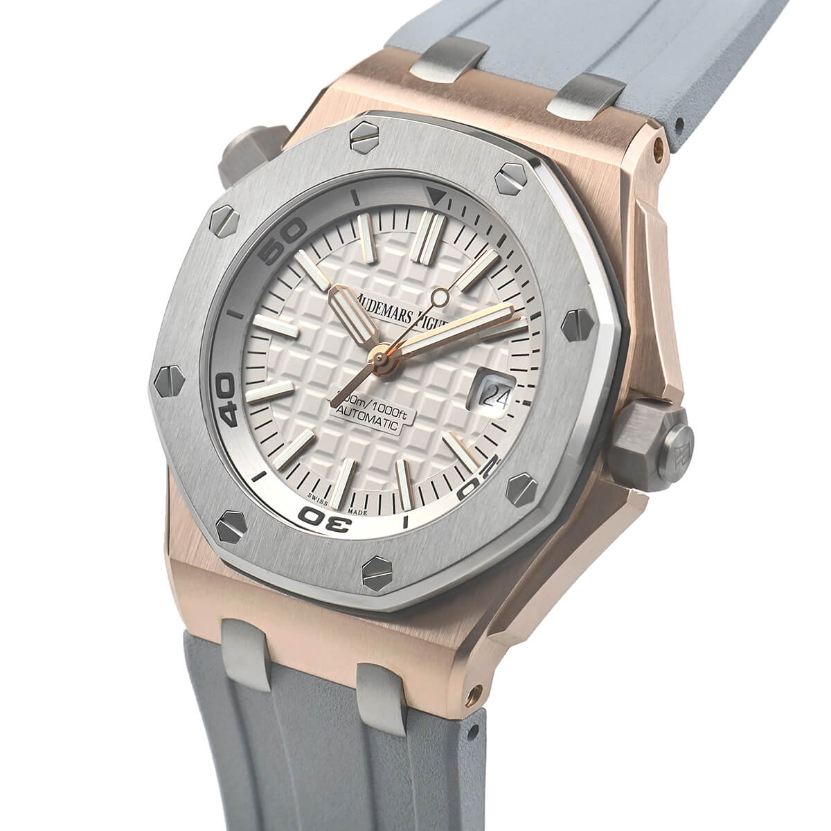 オフショア コレクションに加わったダイバーウォッチ「ロイヤルオーク オフショア ダイバー」。ロイヤルオークの特徴的なケースデザインはそのままに、300mもの防水性能を誇ります。