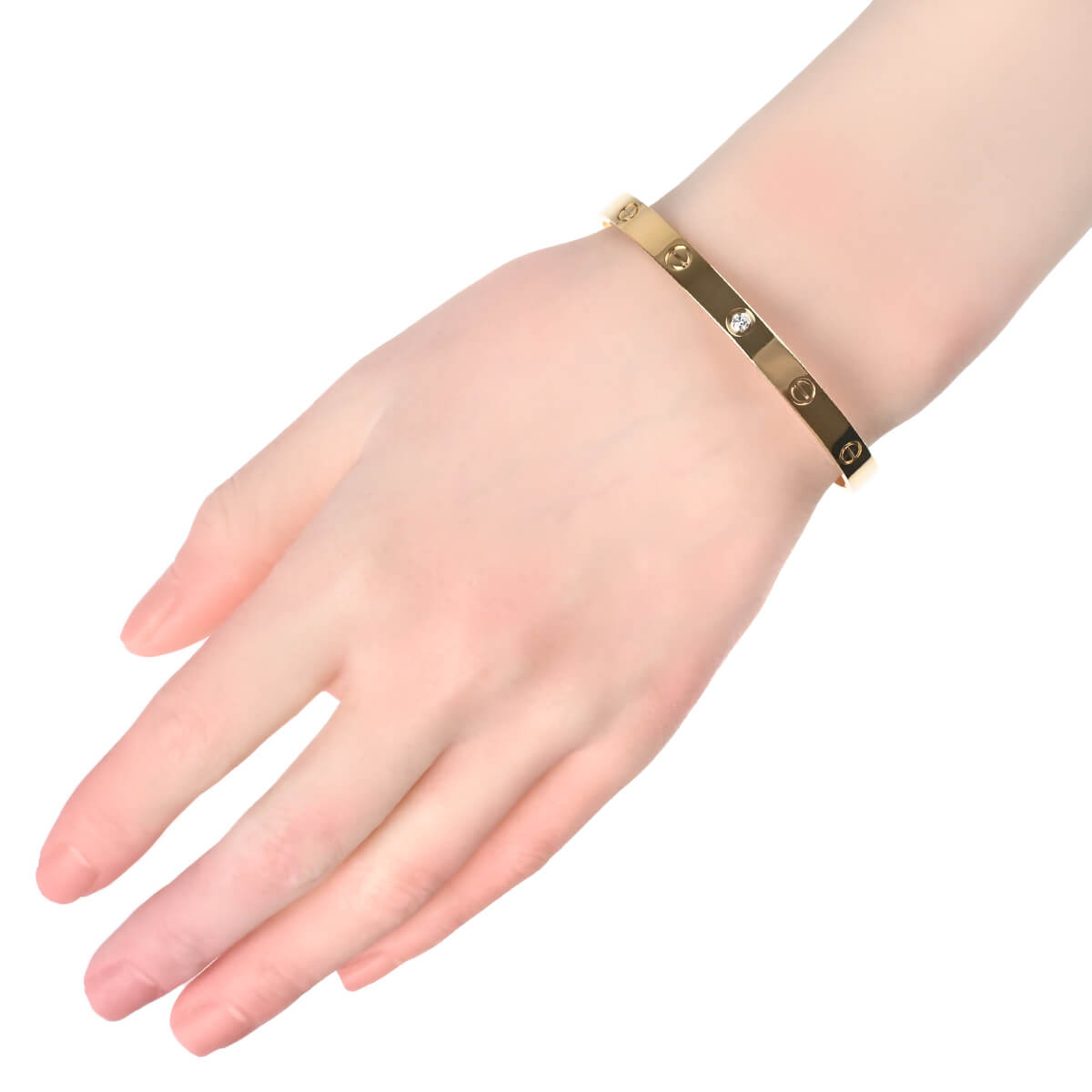 1970年代、『Cartier(カルティエ)』ニューヨークのアトリエで、イタリア出身のジュエリーデザイナー、アルド・チプロによってデザインされた「LOVE」ブレスレット。永遠に結ばれる“絆”のコレクションは、無駄のない端正なビス、完成されたシェイプ、その確固たるエレガンスがタイムレスな魅力を放ちます。ノーマルのラブブレスとは違う、着脱の簡単さが何よりも魅力のイエローゴールド製オープンバングル。メゾンの宝石職人が厳選した煌めくダイヤモンドがひと粒、光り輝くアクセントとしてあしらわれています。定番ブレスとは異なるオープンバングルは、着脱のしやすさが何よりも魅力。艶やかに磨かれたマテリアルに煌めくダイヤモンドの美しさが際立つブレスレットは、1本ですっきりと洗練された存在感を楽しむのはもちろん、地金をミックスしてレイヤードするのもお洒落です。