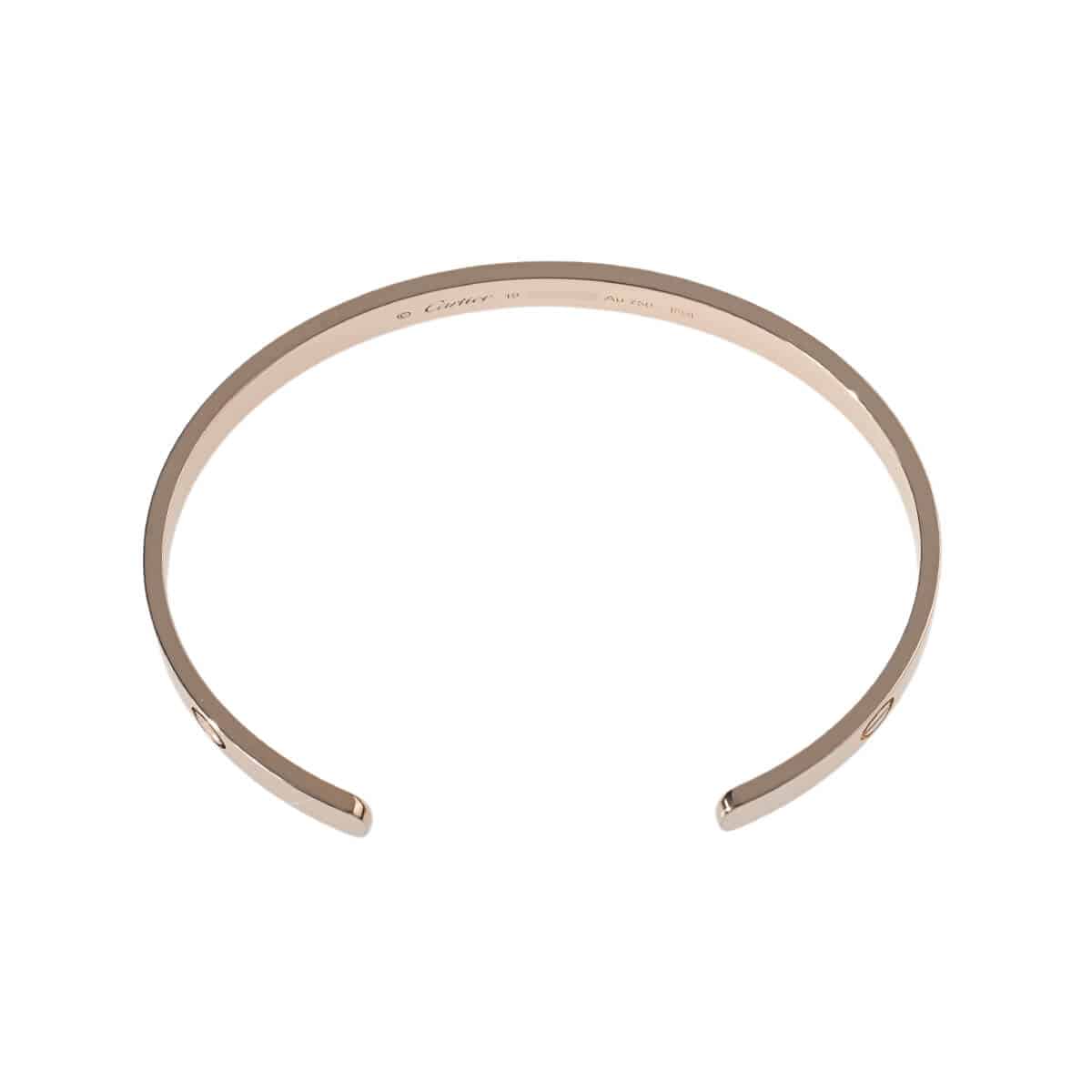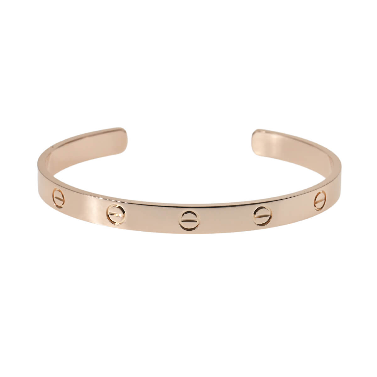 1970年代、『Cartier(カルティエ)』ニューヨークのアトリエで、イタリア出身のジュエリーデザイナー、アルド・チプロによってデザインされた「LOVE」コレクションは、既成概念を超えた愛を封じ込めるジュエリー。永遠に結ばれる“絆”のコレクションは、無駄のない端正なビス、完成されたシェイプ、その確固たるエレガンスがタイムレスな魅力を放ちます。端正なビスがデザインのアクセントになった、洗練されたフォルムが美しいピンクゴールド製オーバルシェイプオープンバングル。定番ラブブレスとは異なるオープンバングルは、着脱のしやすさが何よりも魅力。艶やかに磨かれたマテリアルの美しさが際立つブレスレットは、1本ですっきりと洗練された存在感を楽しむのはもちろん、地金をミックスしてレイヤリングするのも素敵です。