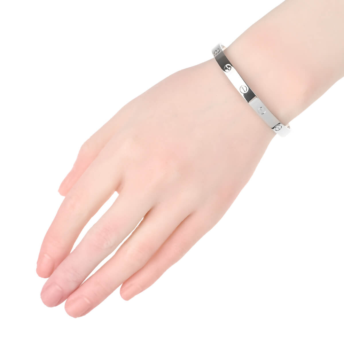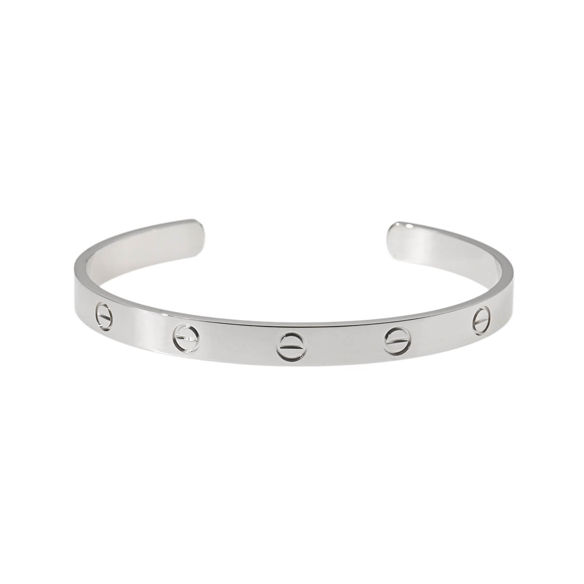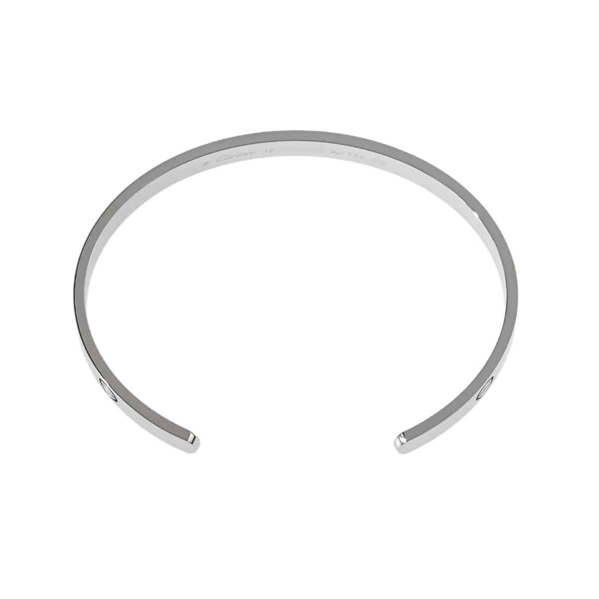 1970年代、『Cartier(カルティエ)』ニューヨークのアトリエで、イタリア出身のジュエリーデザイナー、アルド・チプロによってデザインされた「LOVE」コレクションは、既成概念を超えた愛を封じ込めるジュエリー。永遠に結ばれる“絆”のコレクションは、無駄のない端正なビス、完成されたシェイプ、その確固たるエレガンスがタイムレスな魅力を放ちます。端正なビスがデザインのアクセントになった、洗練されたフォルムが美しいホワイトゴールド製オーバルシェイプオープンバングル。定番ラブブレスとは異なるオープンバングルは、着脱のしやすさが何よりも魅力。艶やかに磨かれたマテリアルの美しさが際立つブレスレットは、1本ですっきりと洗練された存在感を楽しむのはもちろん、地金をミックスしてレイヤリングするのも素敵です。