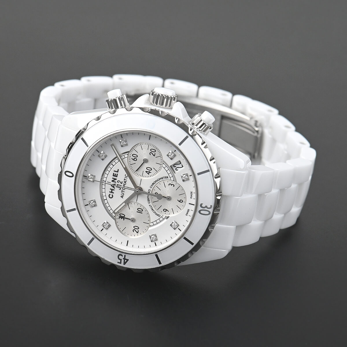 セラミックの独自の雰囲気で大ヒットしている「J12」。こちらは自動巻きムーブメントを採用したクロノグラフモデル。