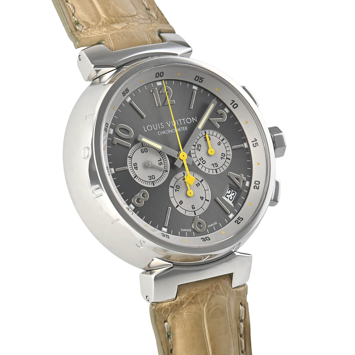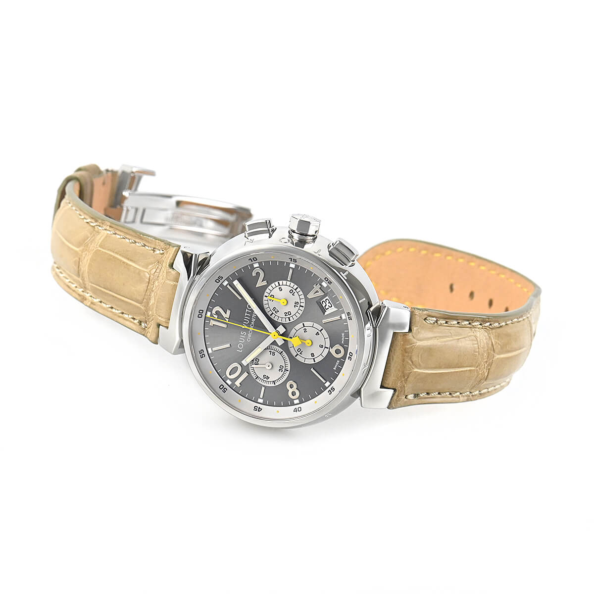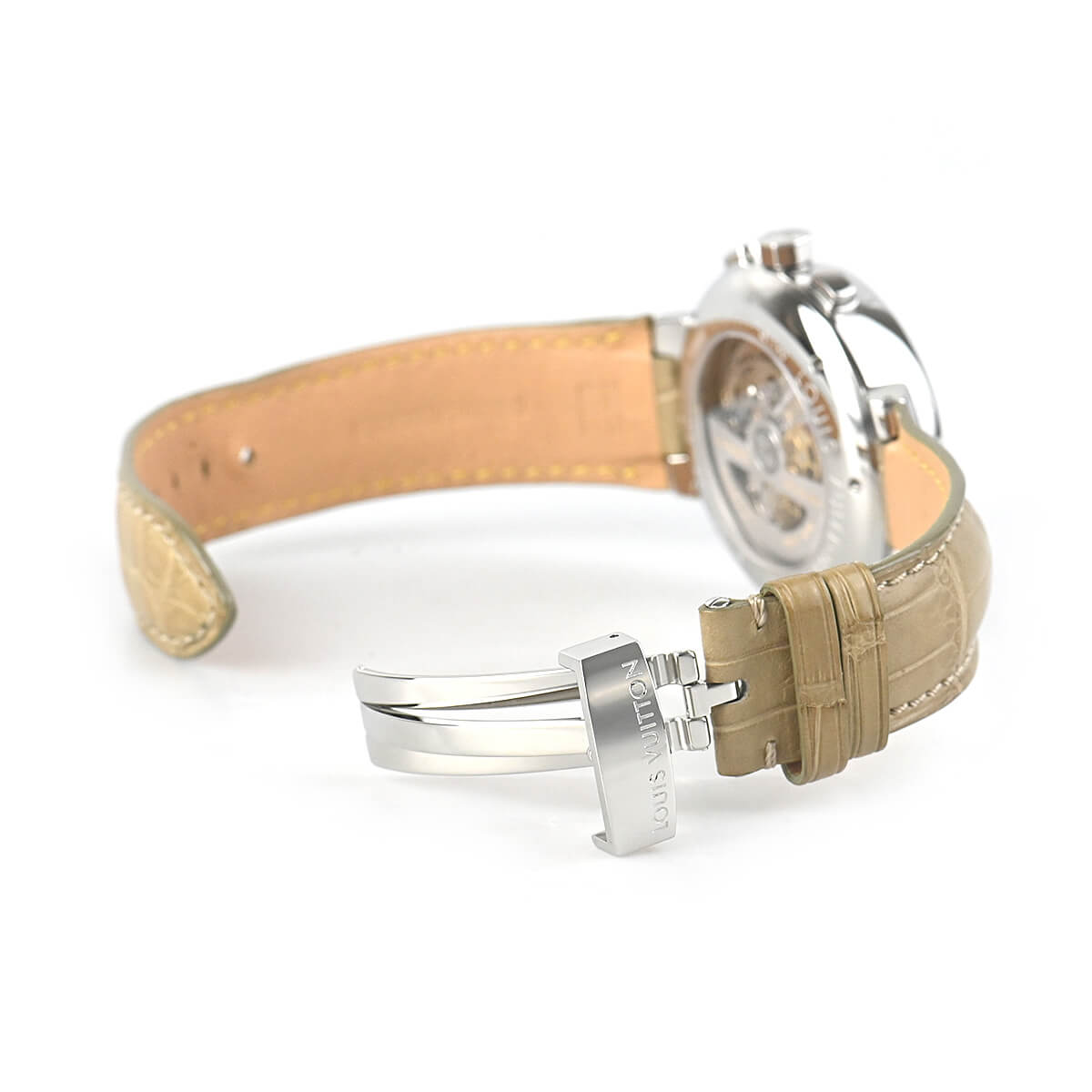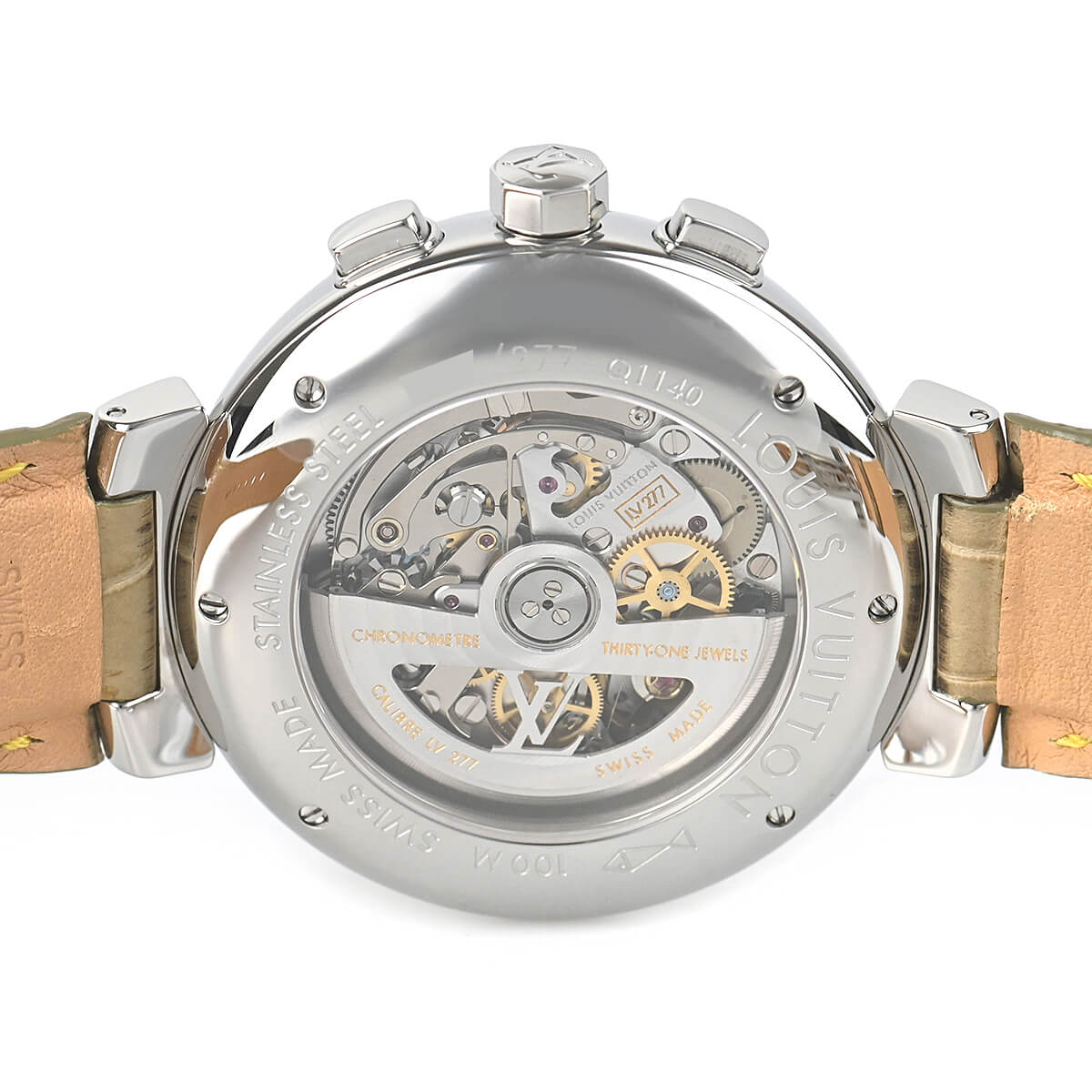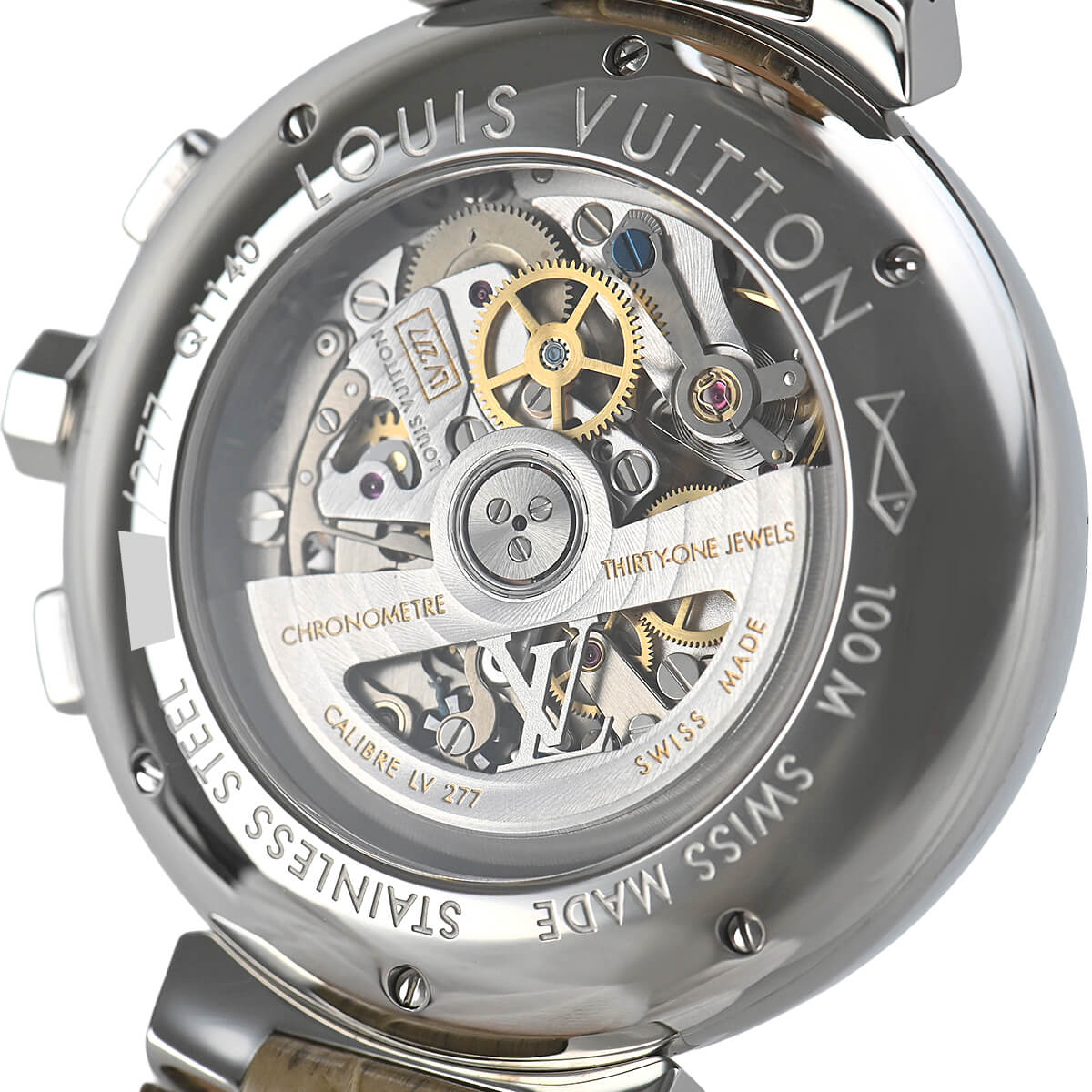 ルイ・ヴィトンが誇る人気ライン「タンブール」の中でも、特別なクラフトマンシップが込められた「タンブールクロノ LV277」。277の部品から作り上げられたキャリバーLV277は、36,000振動もの高振動により、滑らかなクロノ針の動きと高精度を実現しています。