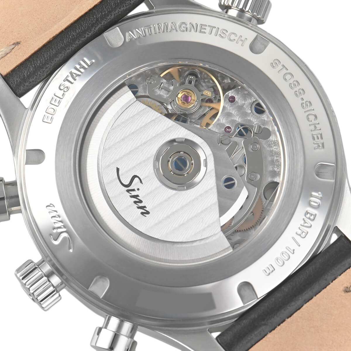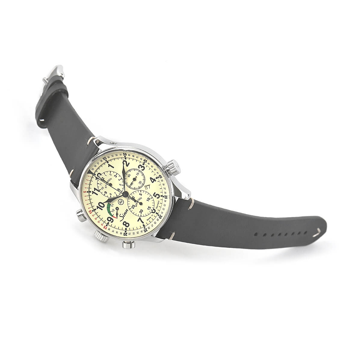 クラシカルな雰囲気を持つラリークロノグラフ「917.RALLYE.CHRONO」。ラリーに必要な機能としてカウントダウンベゼル、ひっかからないための逆リューズ、重要なステージで最終残り時間15分を喚起させるダイヤル外周の赤いインデックスなどを備えています。