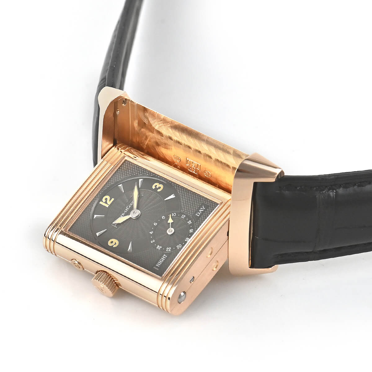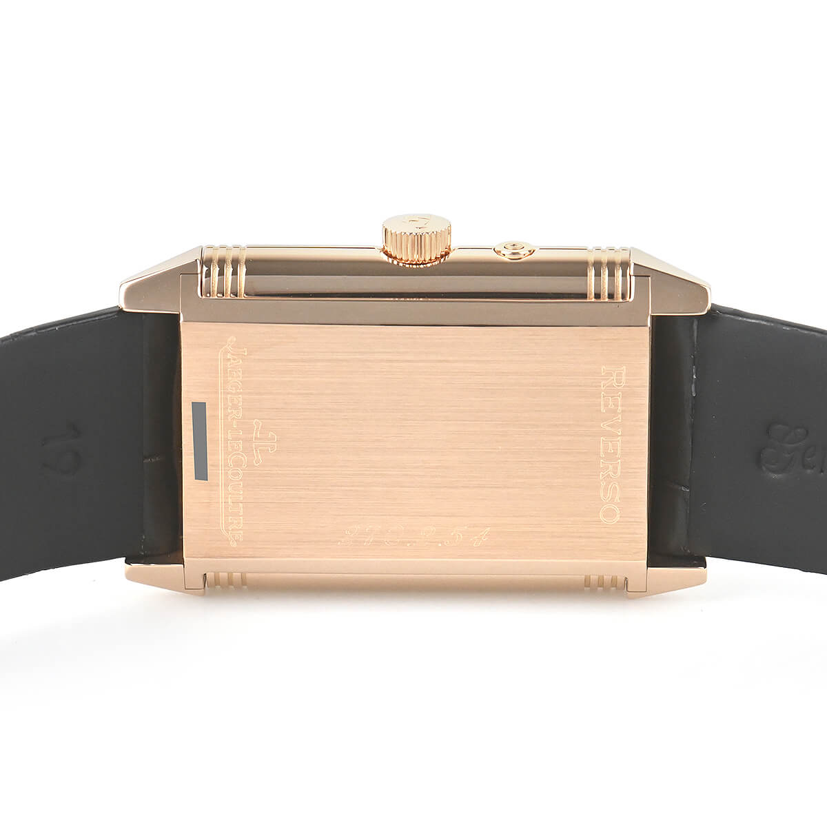上流階級のスポーツであるポロ競技の際、時計を反転させる事で風防ガラスを守ったのがレベルソの始まりです。そのレベルソシリーズの反転するケースを利用したGMT時計が、この「レベルソデュオ」。