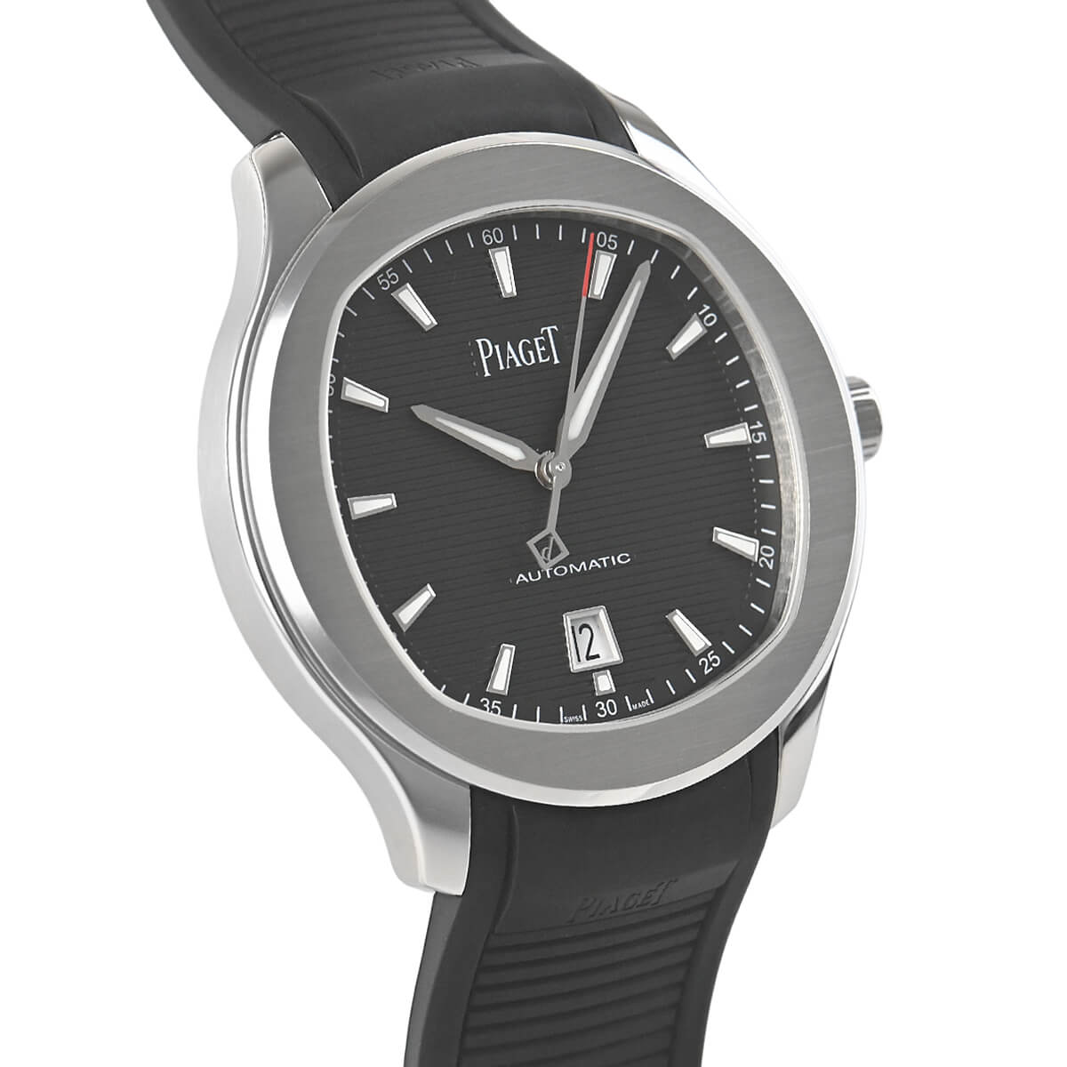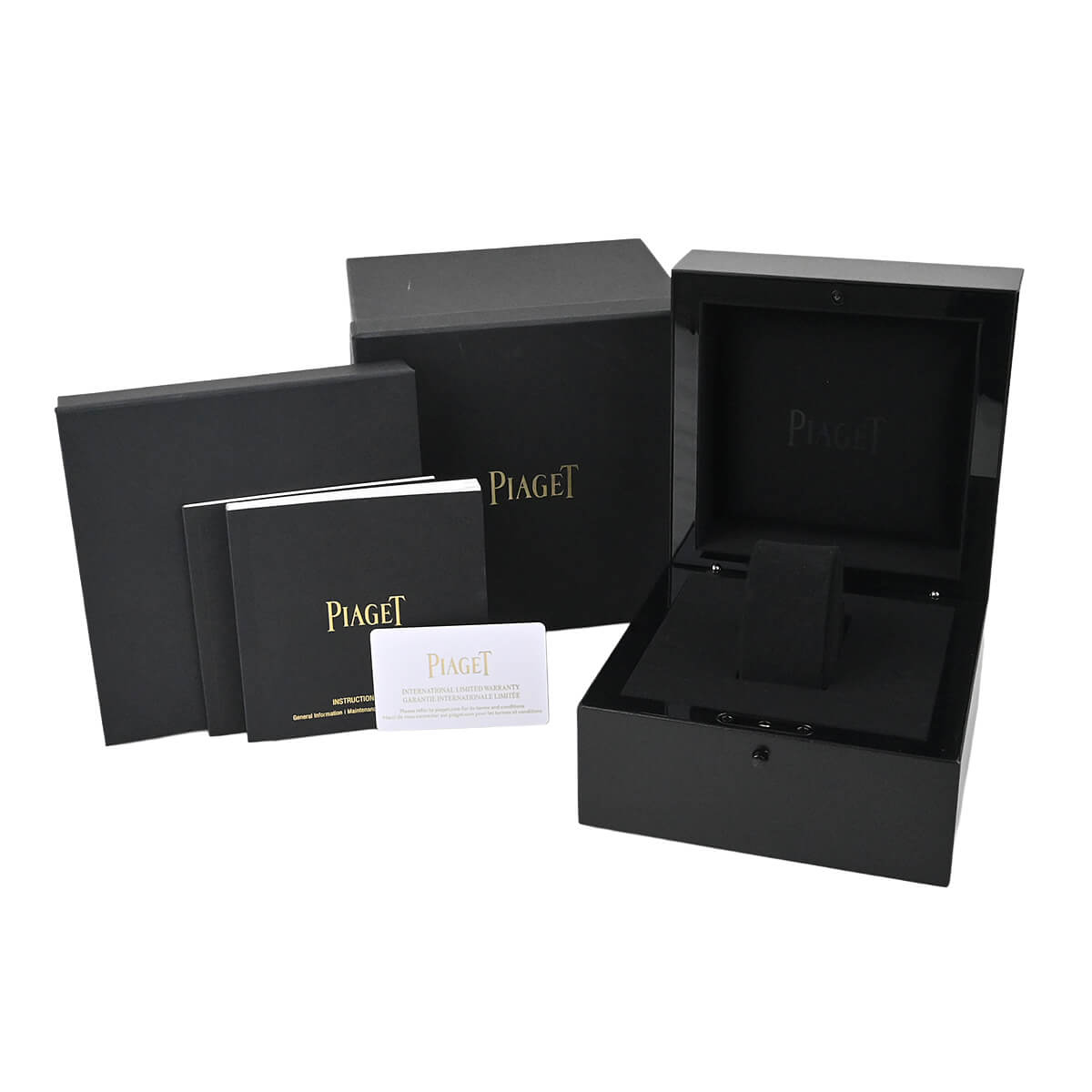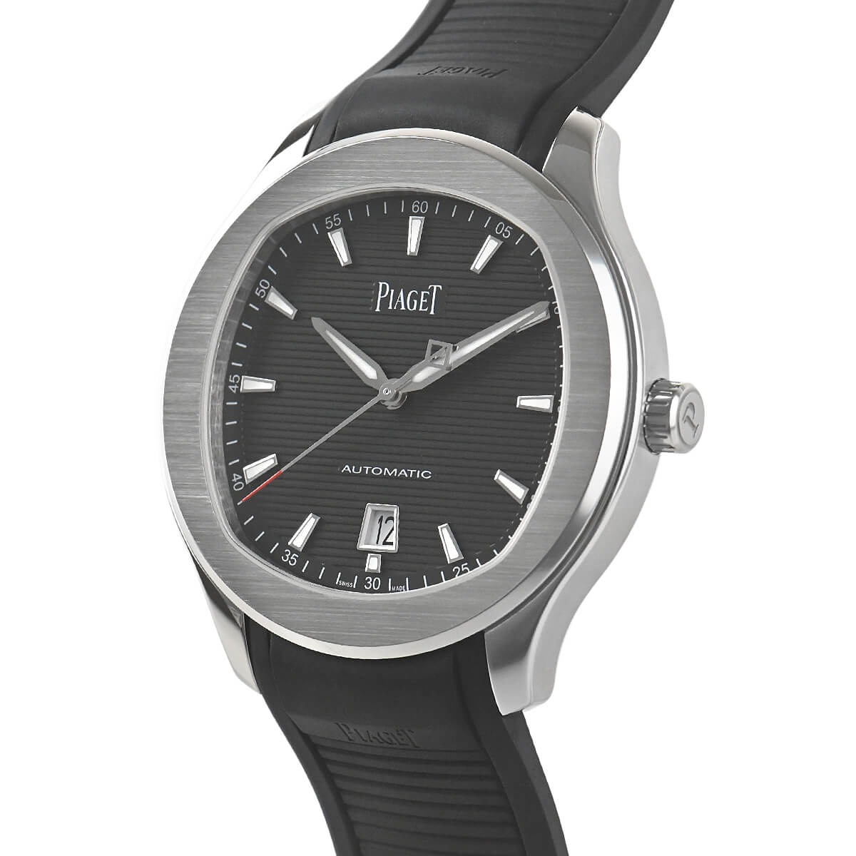 ピアジェの紋章が刻印されたチャコールグレーのローターも見ものです。