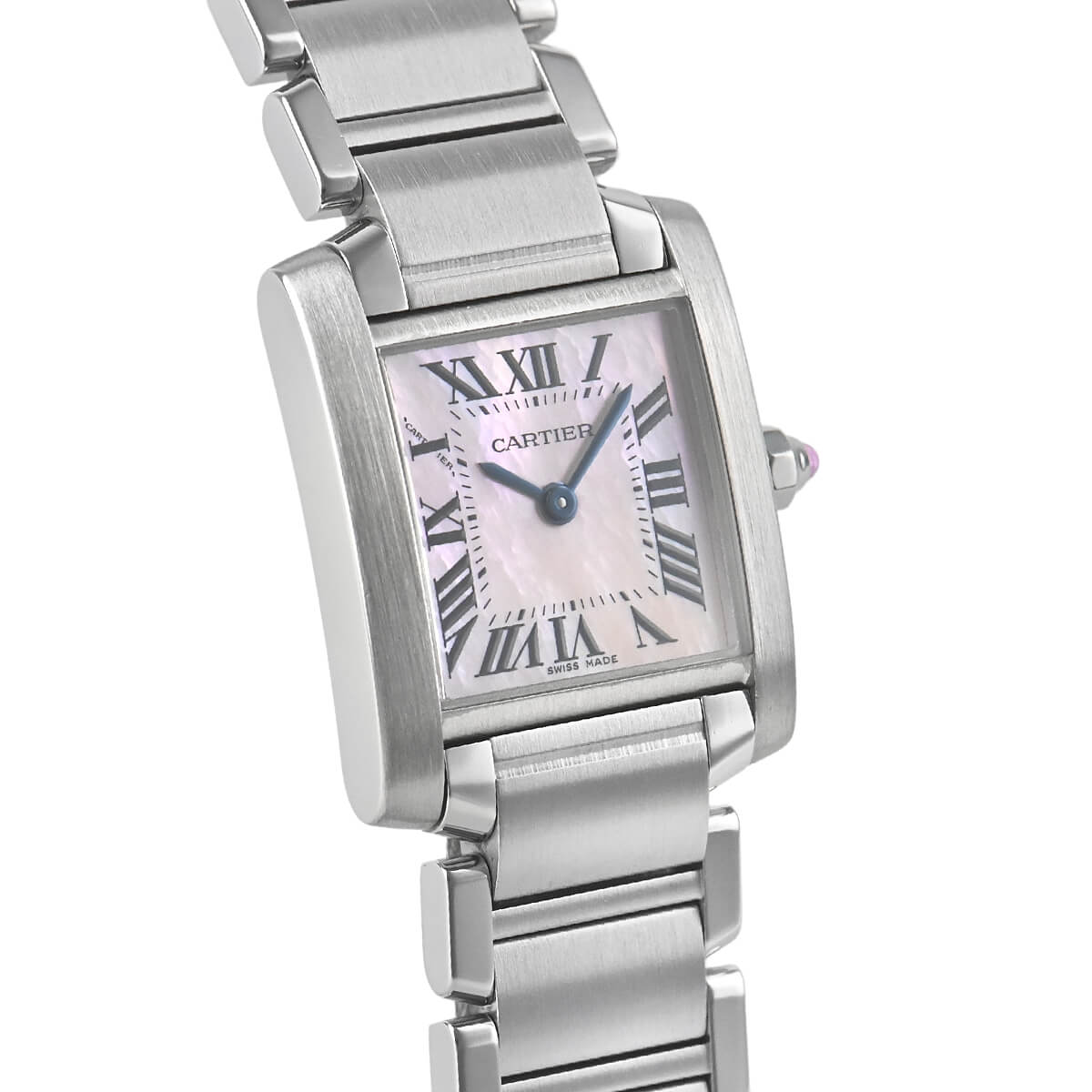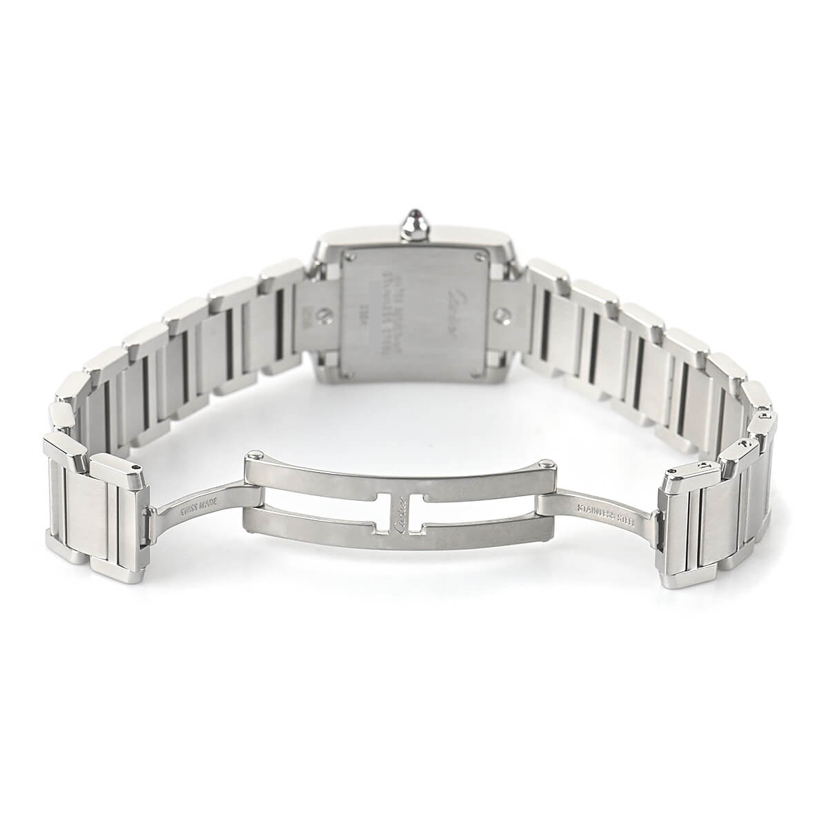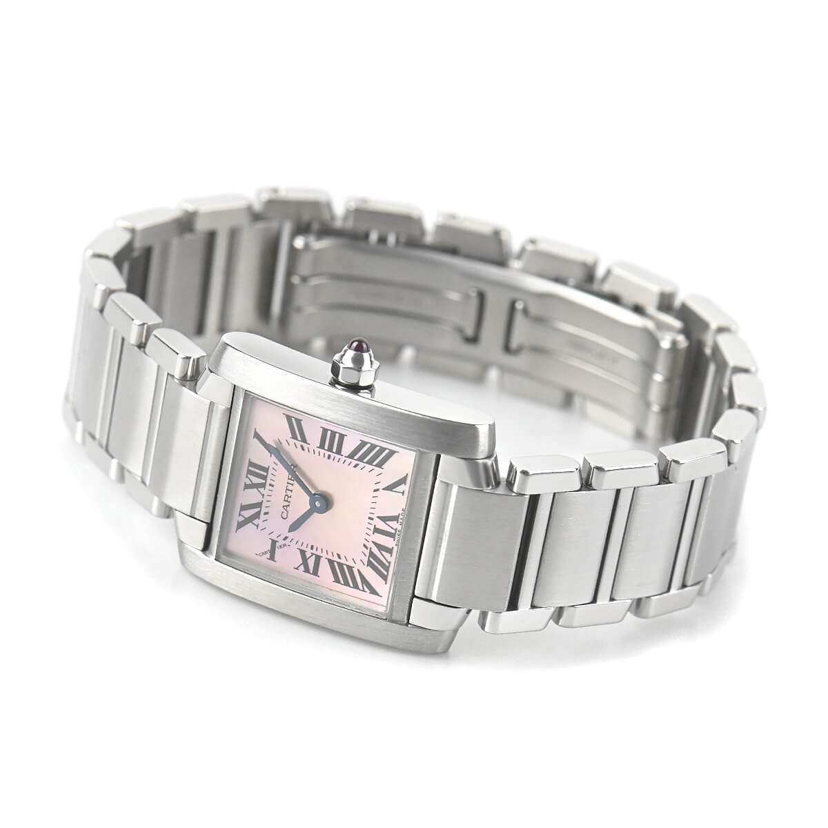 戦車のキャタピラからインスピレーションを得てデザインされた「タンクフランセーズ」。その由来とは裏腹に、ブレスレットウォッチとして女性らしい雰囲気が漂います。