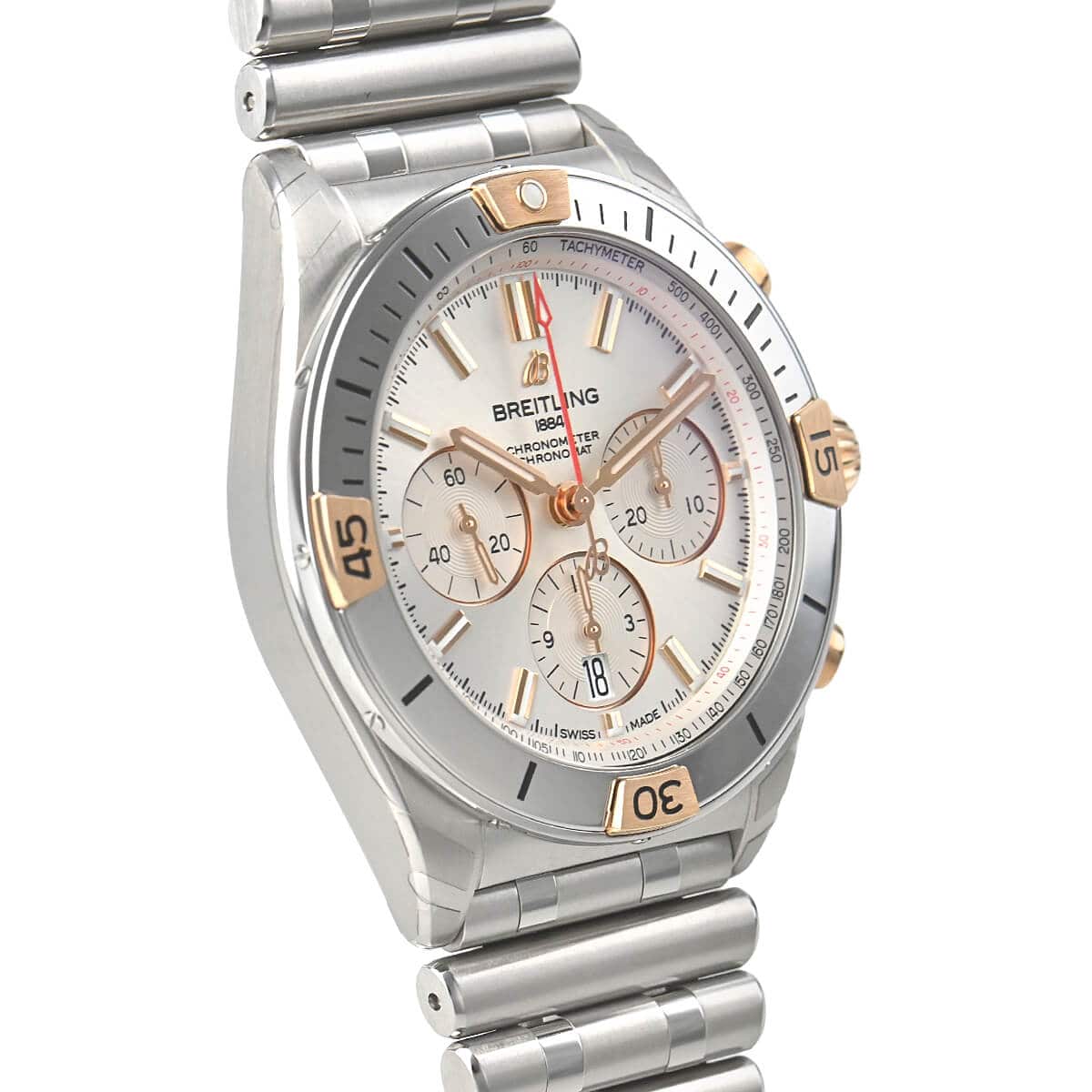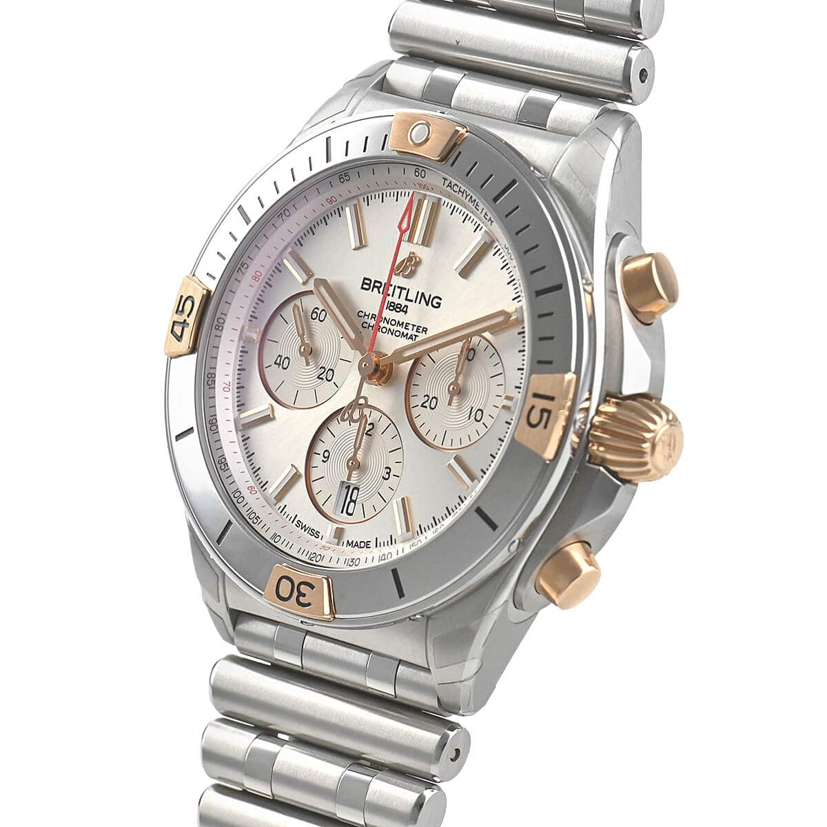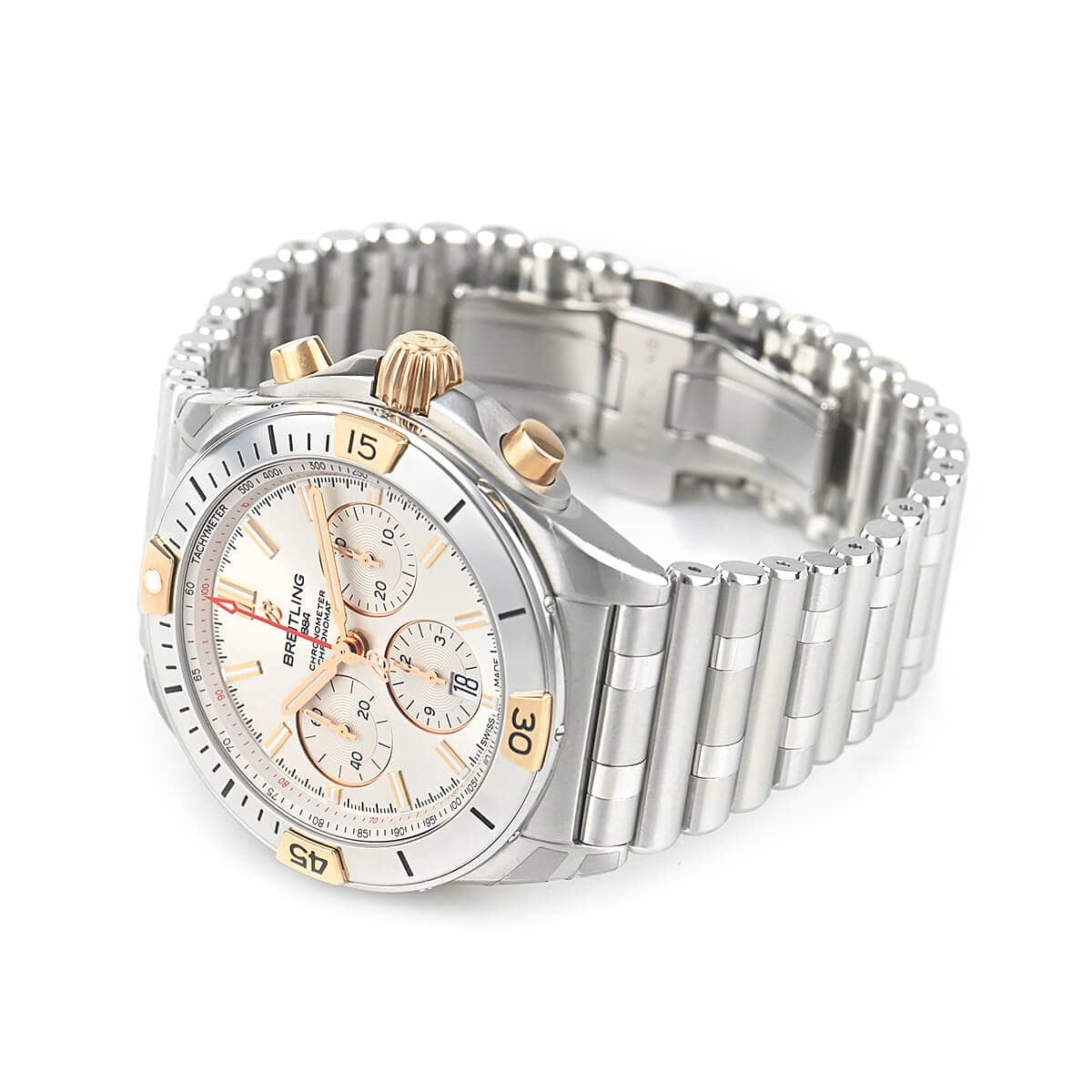 こちらの【クロノマットB01 42】は、初代クロノマットにあったオニオン型リューズ、回転ベゼル上に設けた4つのライダータブ、ルーローブレスを現代的にアップデートさせたデザインで体現したモデル。