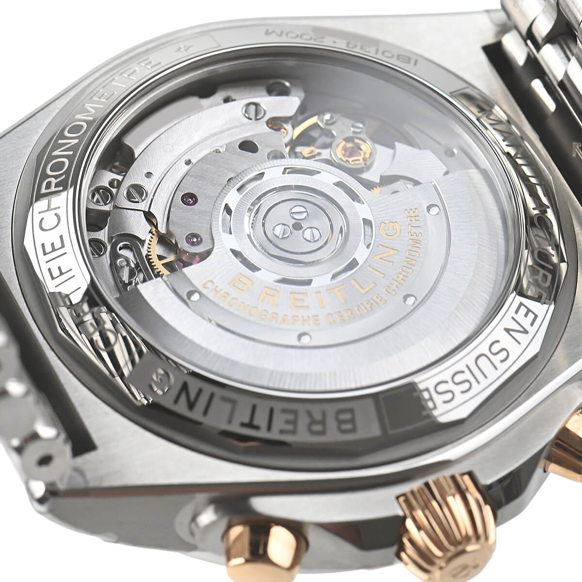 ムーブメントには70時間以上ものロングパワーリザーブを誇り、ブライトリングの拘りが詰まった自社製自動巻きキャリバーB01を搭載します。
