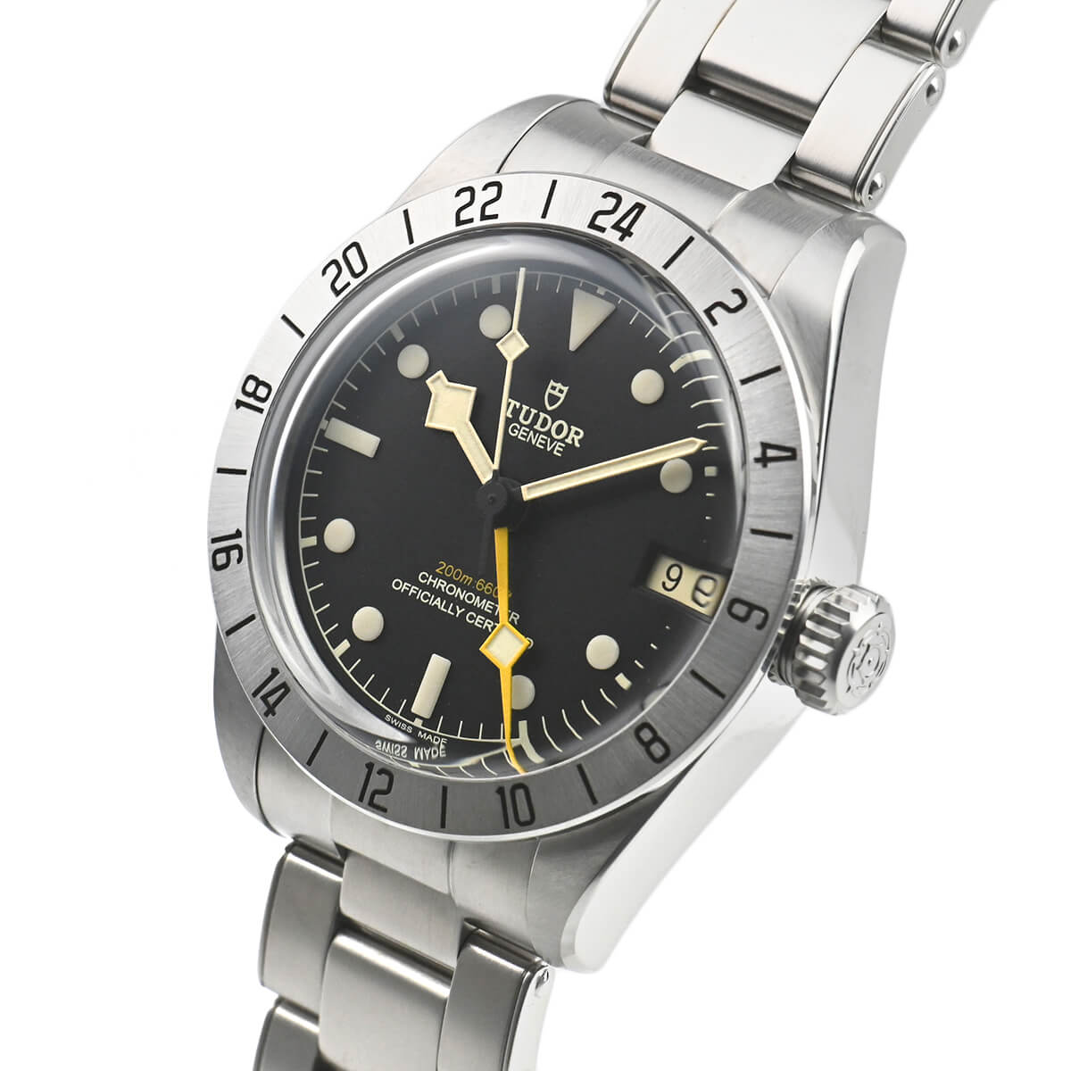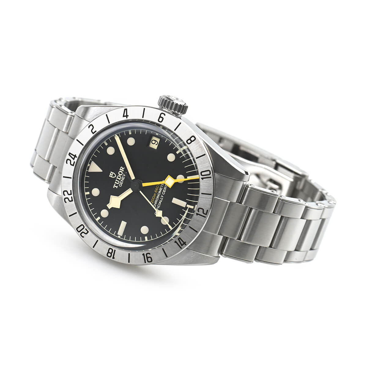 【M79470-0001】ブラックベイ プロが入荷しました。黄色いGMT針とステンレスベゼルに記載された24時間表記を用いたことでロレックスのヴィンテージ「エクスプローラーII」を彷彿させます。
