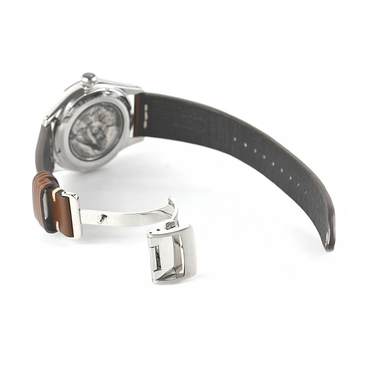 温かみのある琺瑯のダイヤルは琺瑯職人である横澤満氏が監修したもので、ノスタルジックな雰囲気に仕上がっています。