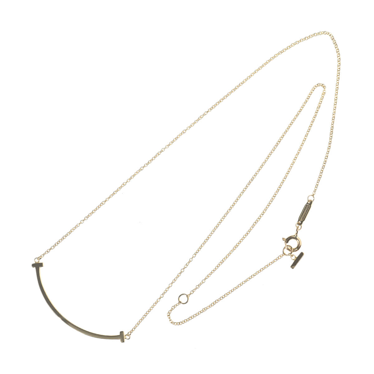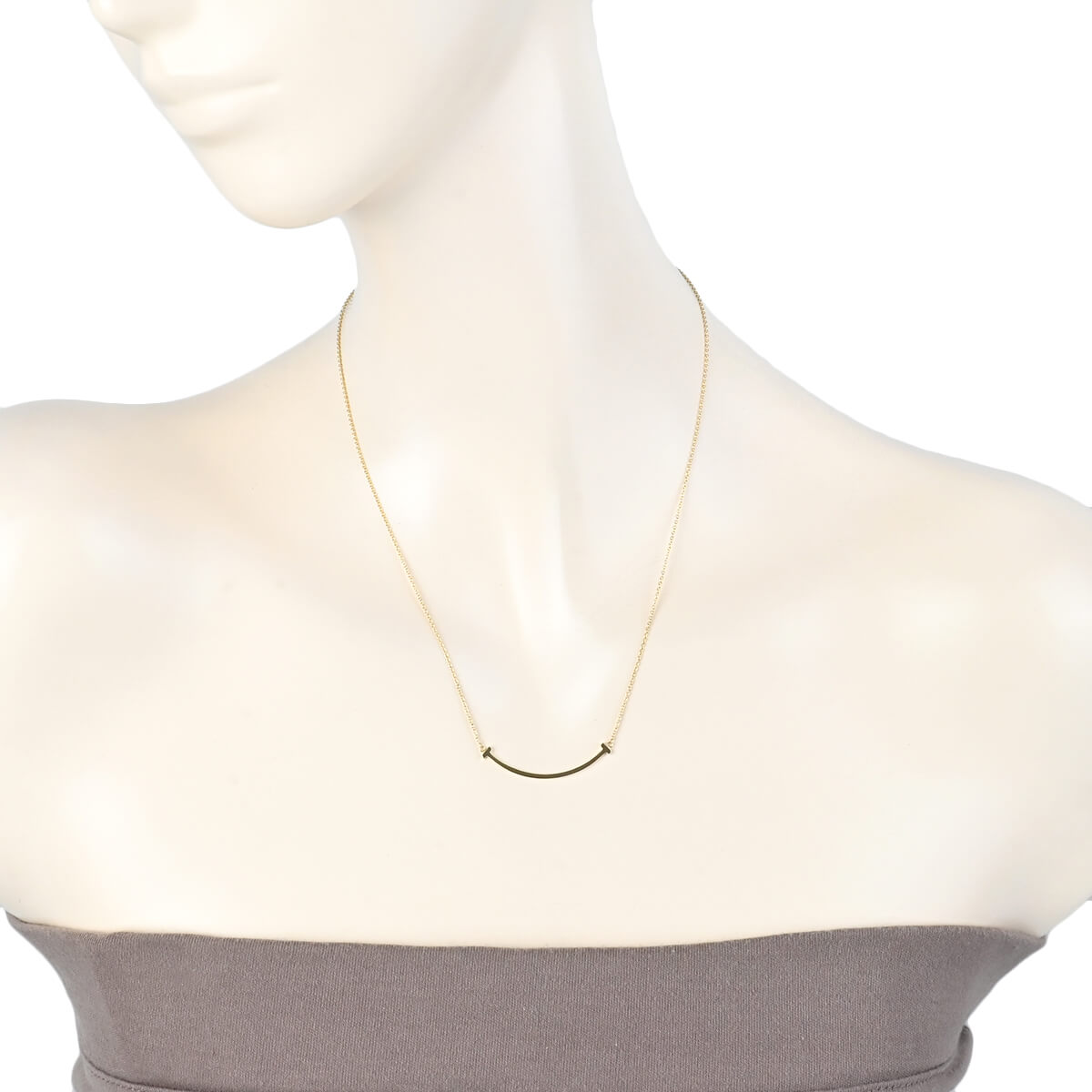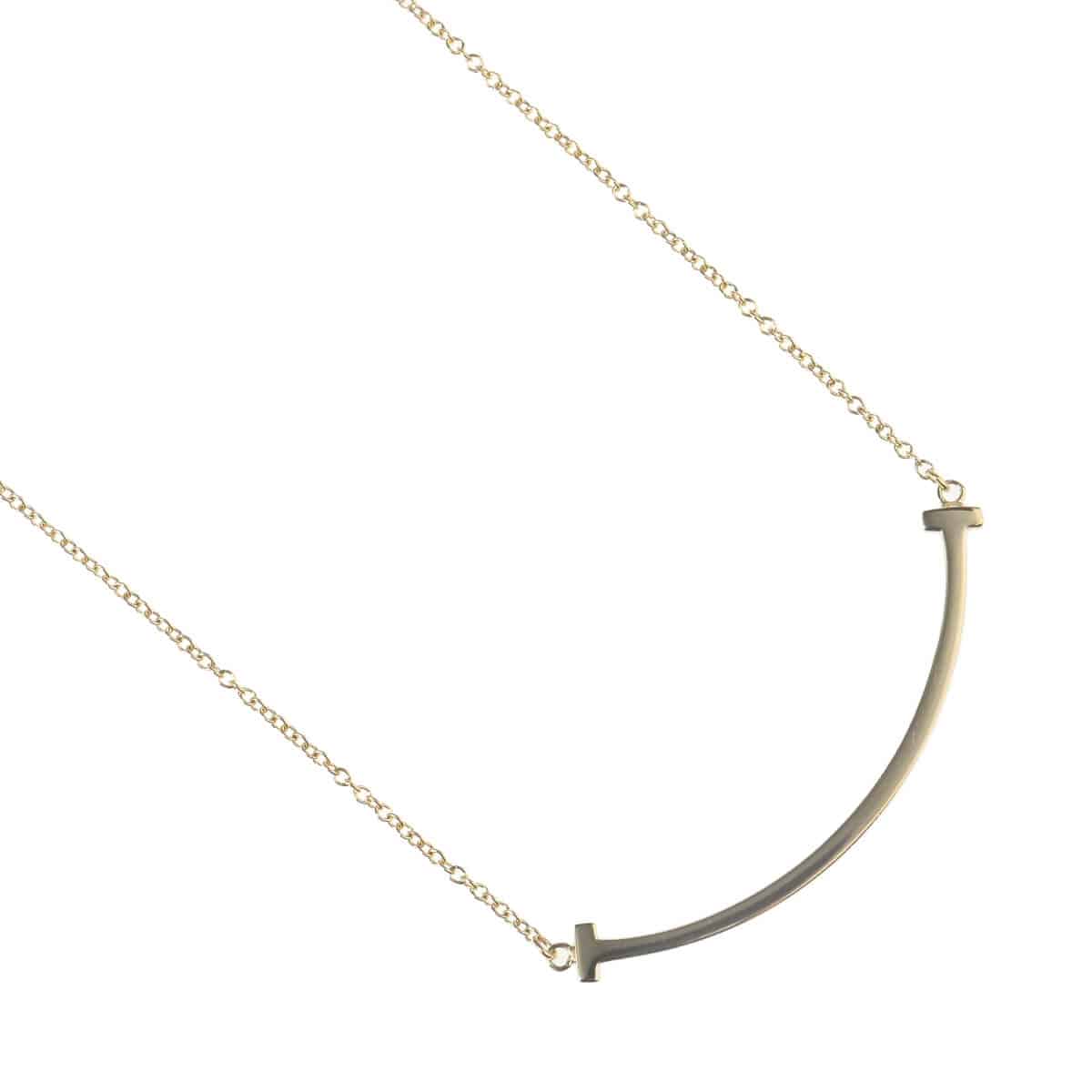 グラフィックなアングルとすっきりとクリーンなラインが溶けあって、美しい個性となっている『TIFFANY&Co.(ティファニー)』「T」。「Tスマイル」は世界で最も普遍的な幸せの象徴である笑顔と、そのジェスチャーがもたらす繋がりを表現しているコレクションです。艶やかなマテリアルで描かれた大胆でエレガントな曲線が、モダンでありながらタイムレスな美を具現化している、イエローゴールド製「Tスマイル」スモールネックレス。時を超える洗練された美をまとった、さりげない個性をもったペンダントが、デコルテで一層の存在感を放ちます。