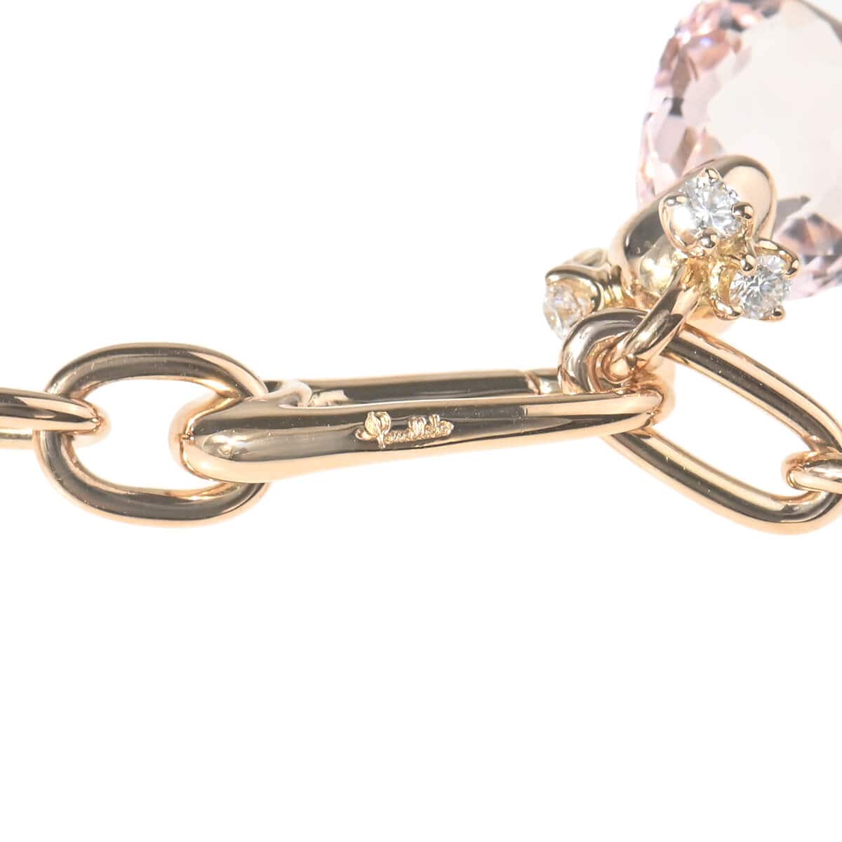 1967年にイタリア・ミラノで金細工を家業とする家に生まれたピーノ・ラボリーニが立ち上げたブランド、『Pomellato(ポメラート)』。ストーンのカッティングから検品まで、全て熟練の職人がサヴォアフェールを発揮してミラノ本社のアトリエでつくられるポメラートのジュエリーは、美しいマテリアルを贅沢につかったり、カラフルなストーンをあしらったり、ユニークで革新的、そして独創的なデザインで、世界のファッショニスタまでも虜にしています。“優美さ”や“愛”など、慈愛に満ちた石言葉を持ち、愛の象徴とされてきた愛らしいピーチカラーのモルガナイトが際立つ、南国の花をイメージした「BAHIA(バイア)」コレクションの、ローズゴールド製ネックレス。天然石ならではのみずみずしい輝きと神秘的なたたずまい、輝くダイヤモンドのコントラストが可憐に、神秘的にスタイリングを印象づけます。ポメラートらしい大胆な地金デザインとカラーストーンづかいが際立つ、美しい存在感にあふれたハイジュエリーです。