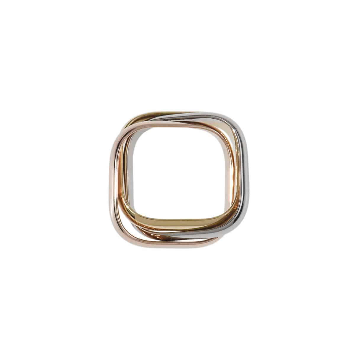 ジュエリーと彫刻、マスキュリンとフェミニン、装飾品とシンボルの境界を曖昧にしたいという、ルイ・カルティエの遊び心あふれる想像力によって1924年に生まれ、愛され続けている「TRINITY(トリニティ)」。ピンク、 イエロー、ホワイトのスリーカラーゴールドの環が絡み合い、織りなす滑らかな流線が象徴的なこのアイコンジュエリーは、シンプルを極めた洗練とは何か、を深く感じる永遠のマストアイテム。2024年に100周年を迎え新デザインとしてコレクションに加わった四角いトリニティ、「トリニティ クッション」リングです。よりモダンなスクエアデザインのフォルムは四角くも決してハードではない、「トリニティ」らしい優しげな丸みを帯びていてエレガント。身につける人それぞれが自由に解釈できる、スタイルとエレガンスを具現した、時を超越したアイコニックなコレクションジュエリーです。