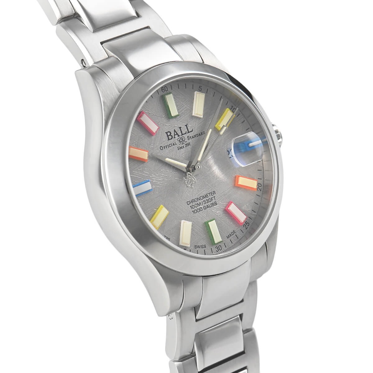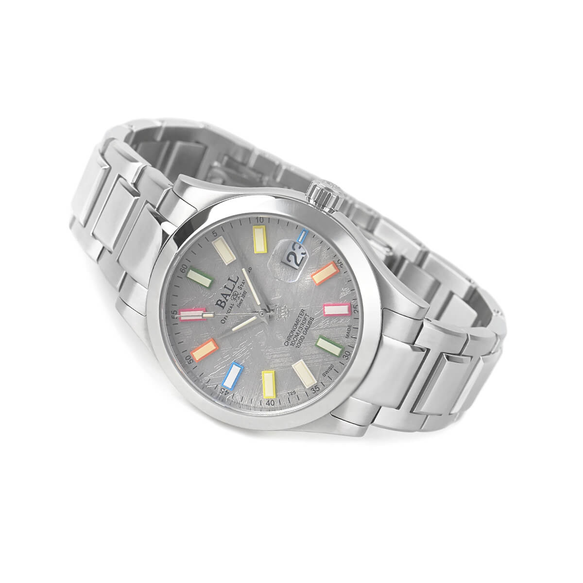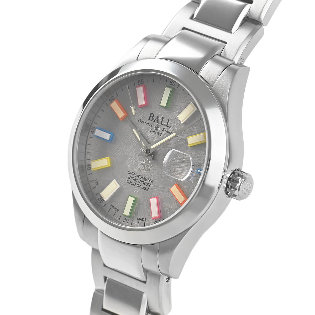 機関士や車掌といったあらゆる鉄道の事業に携わる人たちが、劣悪な仕事環境であった“振動”“ホコリ”“温度差”などにも影響を受けず、安全に使用できる時計の開発に力を注ぎ、アメリカ鉄道公式標準時計を長年に渡り製作した「ボールウォッチ」。こちらは耐衝撃性と80000A/M耐磁性をあわせ持つプラクティカルな「エンジニア」コレクションをアップグレードした「エンジニアIIIマーベライトクロノメーター」。