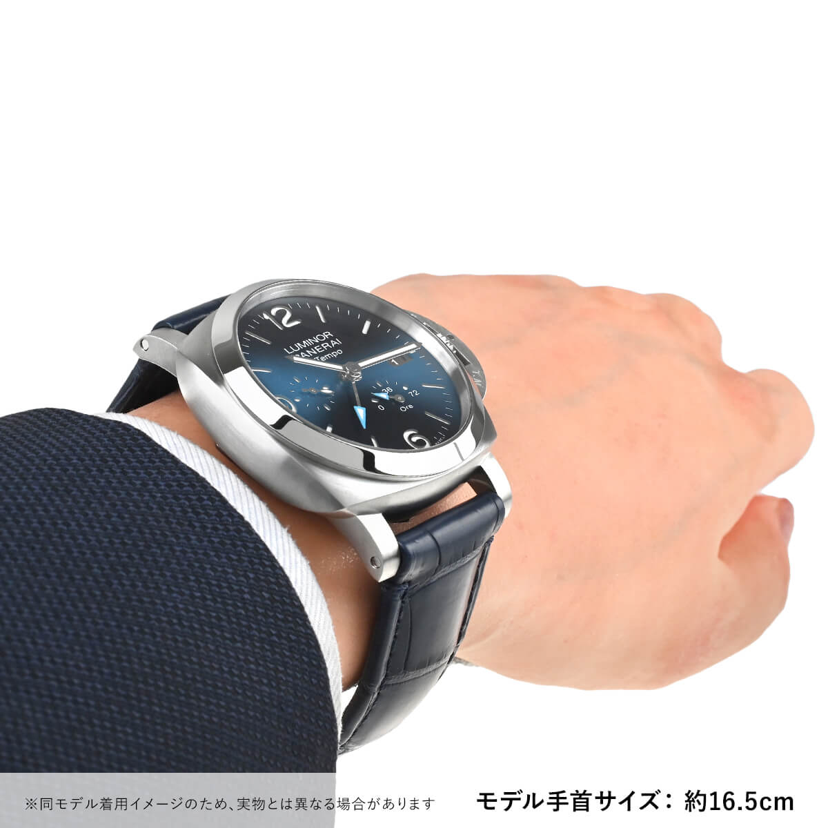 サンブラッシュ仕上げのブルー文字盤も高級感があり素敵です。