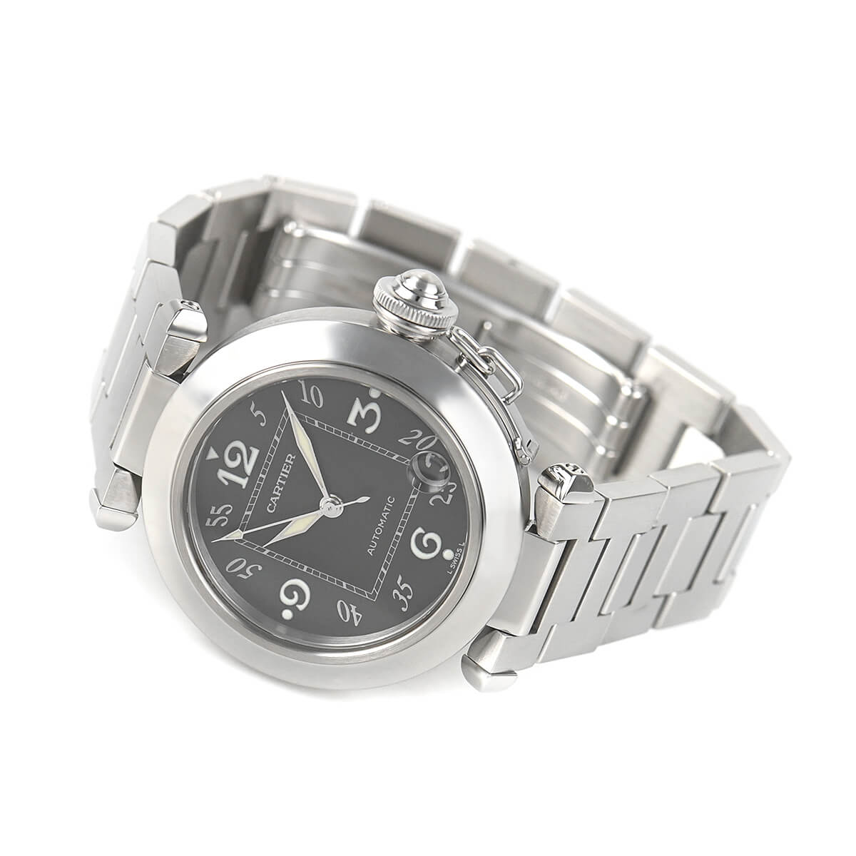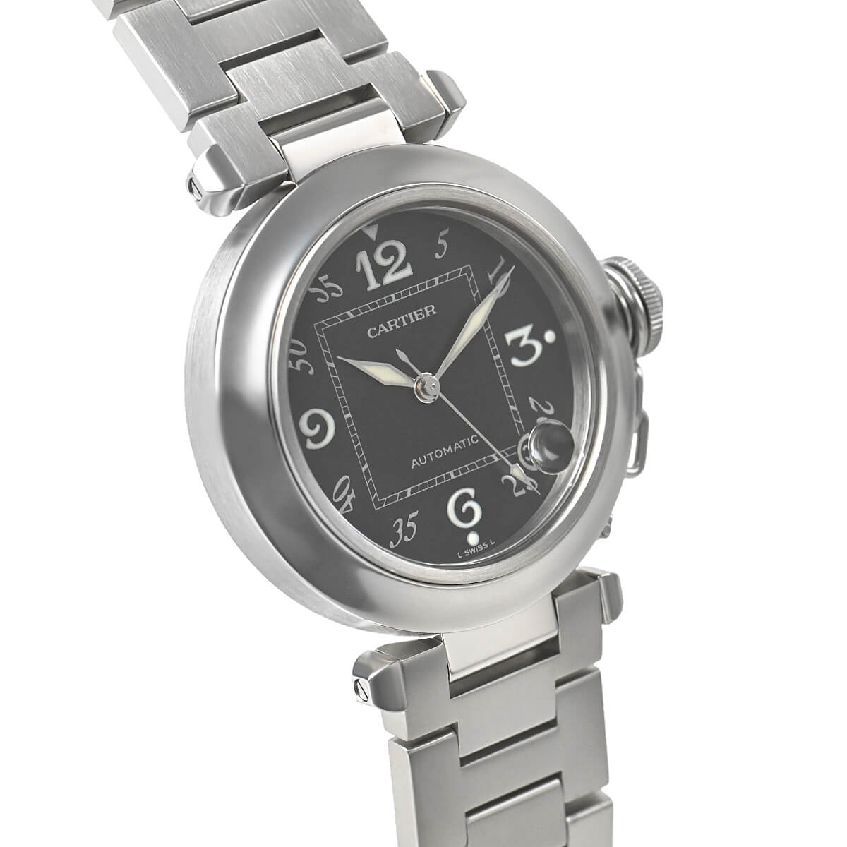 ケース径35mmのユニセックスモデルとして、特に女性からの支持が厚い「パシャC」。ケース径27mmの「ミスパシャ」が発表された後でも常に高い人気を誇っています。