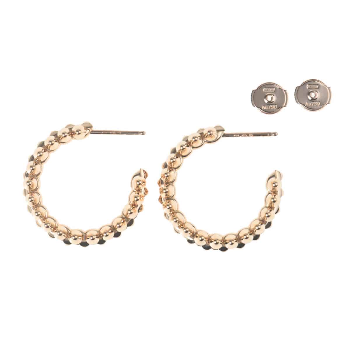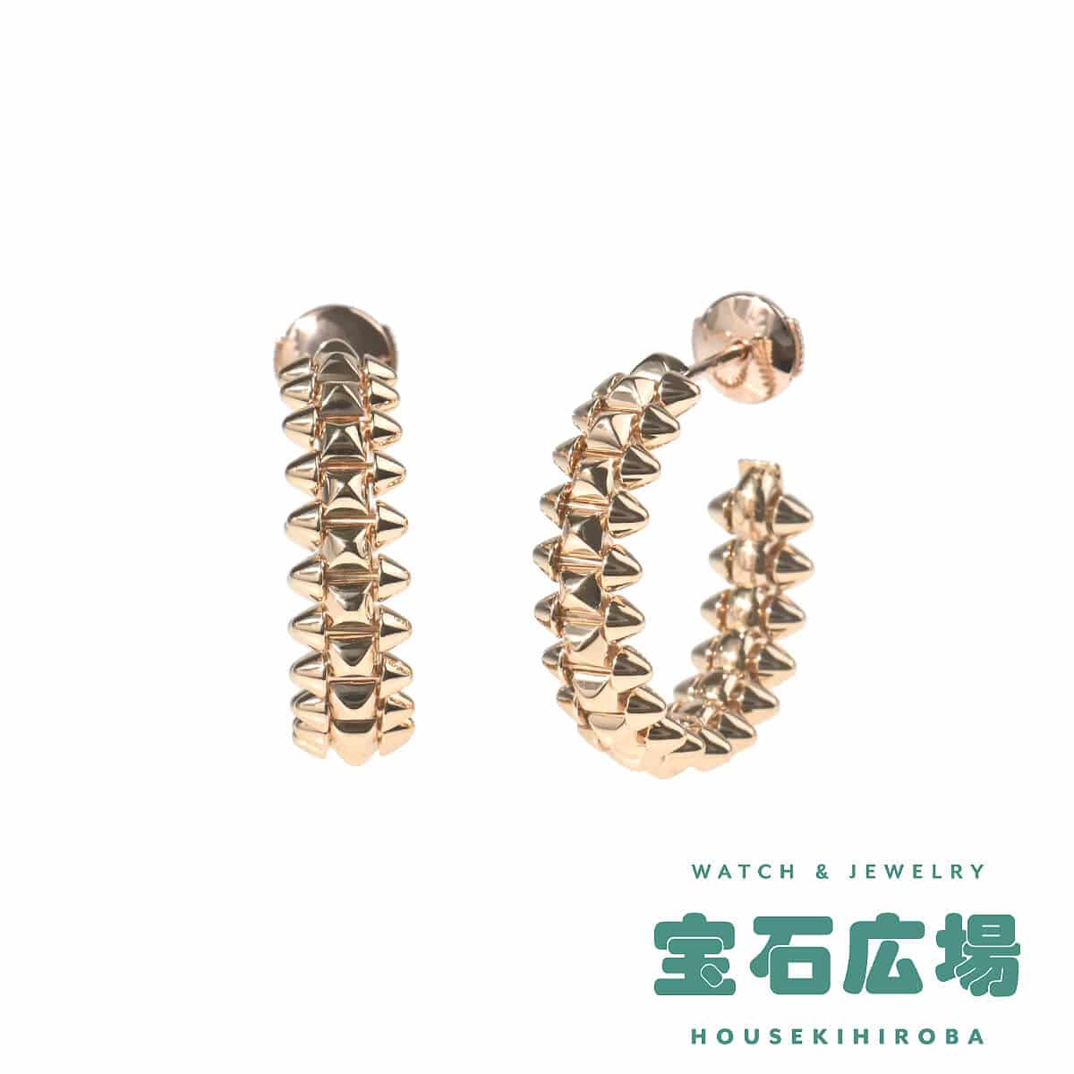クラシックなフォルムとそこからの解放、削ぎ落されたラインと有り余るエネルギー、真面目さとちょっと羽目を外す感覚、そんな相反するものを同時に主張する「クラッシュ ドゥ カルティエ」コレクション。ジオメトリック、スタッズ、クル カレ、そしてクリエイティブな遊び心、そんな『Cartier(カルティエ)』の象徴的で伝統的なデザインコードをモダンに解釈し独創的に組み合わせた、斬新でシックなこのコレクションは未来に引き継がれるアイコンです。フランス語で“スクエア(正方形)”を意味する「カレ」から生まれたカルティエの象徴的なコードのひとつ「クル カレ」がライン中央に並び、その両サイドにあしらわれた「ピコ」と呼ばれる円錐状のスタッズと幾何学的なデザインコントラストを描く、ピンクゴールド製フープピアス。ジオメトリックでありながらどこかフェミニン、ミニマルなデザインでありながら複雑な構造を持つ、相反するふたつの魅力を同時に主張するそのフォルムが美しく、カルティエらしい洗練を纏ったピアスです。